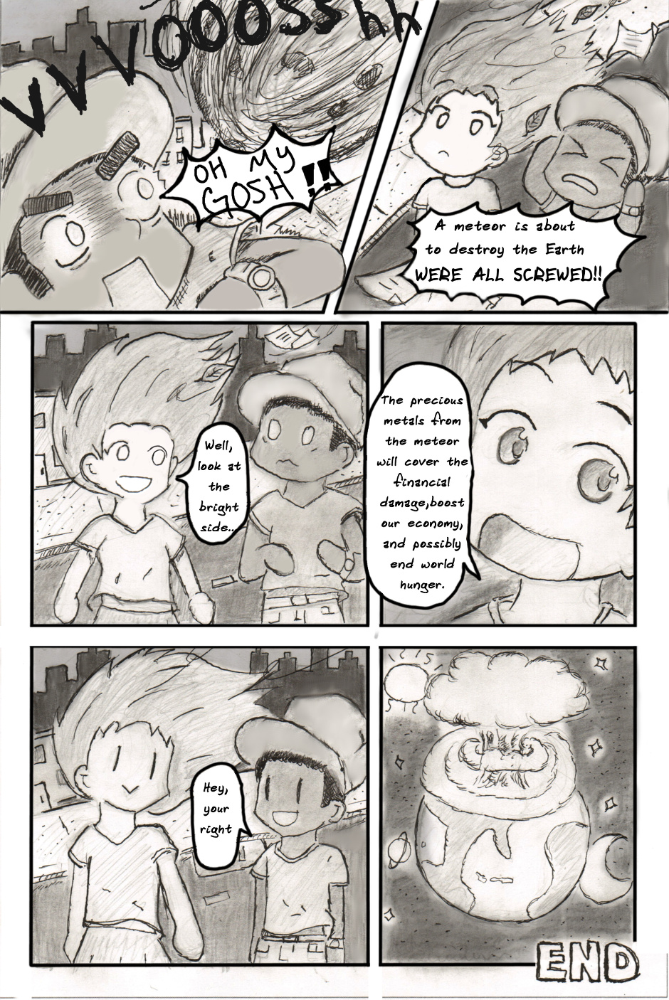 Alway look at the bright side no matter what. (o v <) Thanks for reading this is my first comic series and i hope you enjoyed it. More is coming soon (o v o)b
