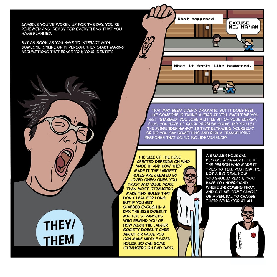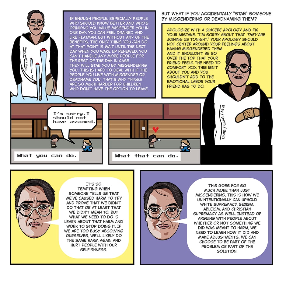 "But I didn't MEAN to insult you!" This comic is meant to help nonbinary individuals and their friends and family have better relationships.