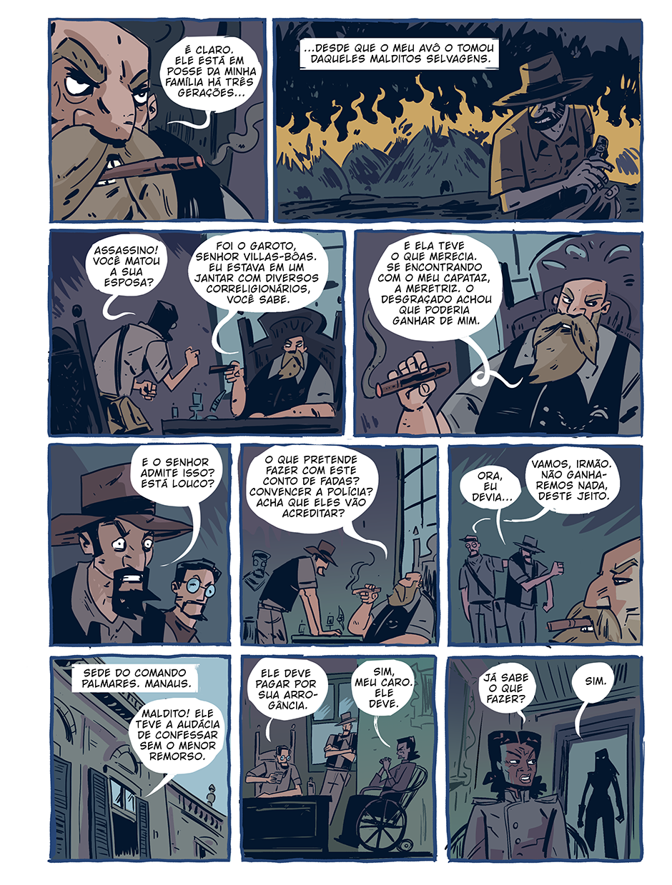 Quando uma jovem senhora é assassinada, todas as evidências indicam que um garoto indígena é o culpado. A população clama por justiça, que sempre avança a passos largos na direção dos indefesos. Mas o Comando Palmares não acredita nisso, e os irmãos Villas-Bôas são enviados para investigar o caso. Desta vez, não é apenas um artefato que está em jogo. Se a verdade não aparecer, um inocente será condenado.