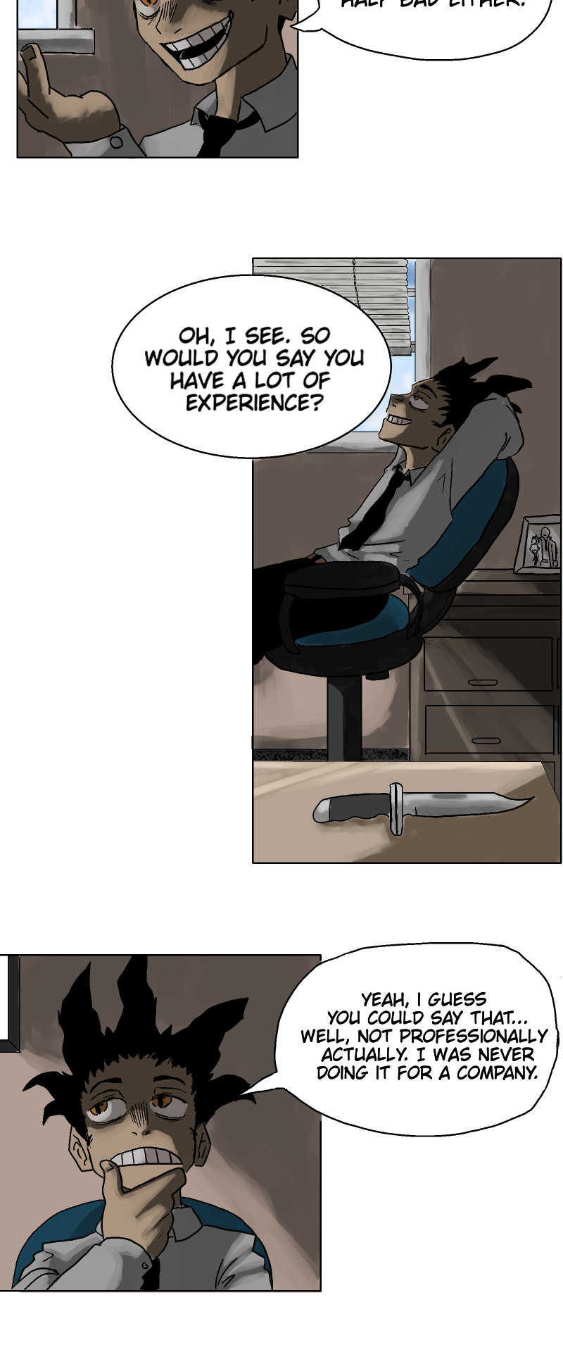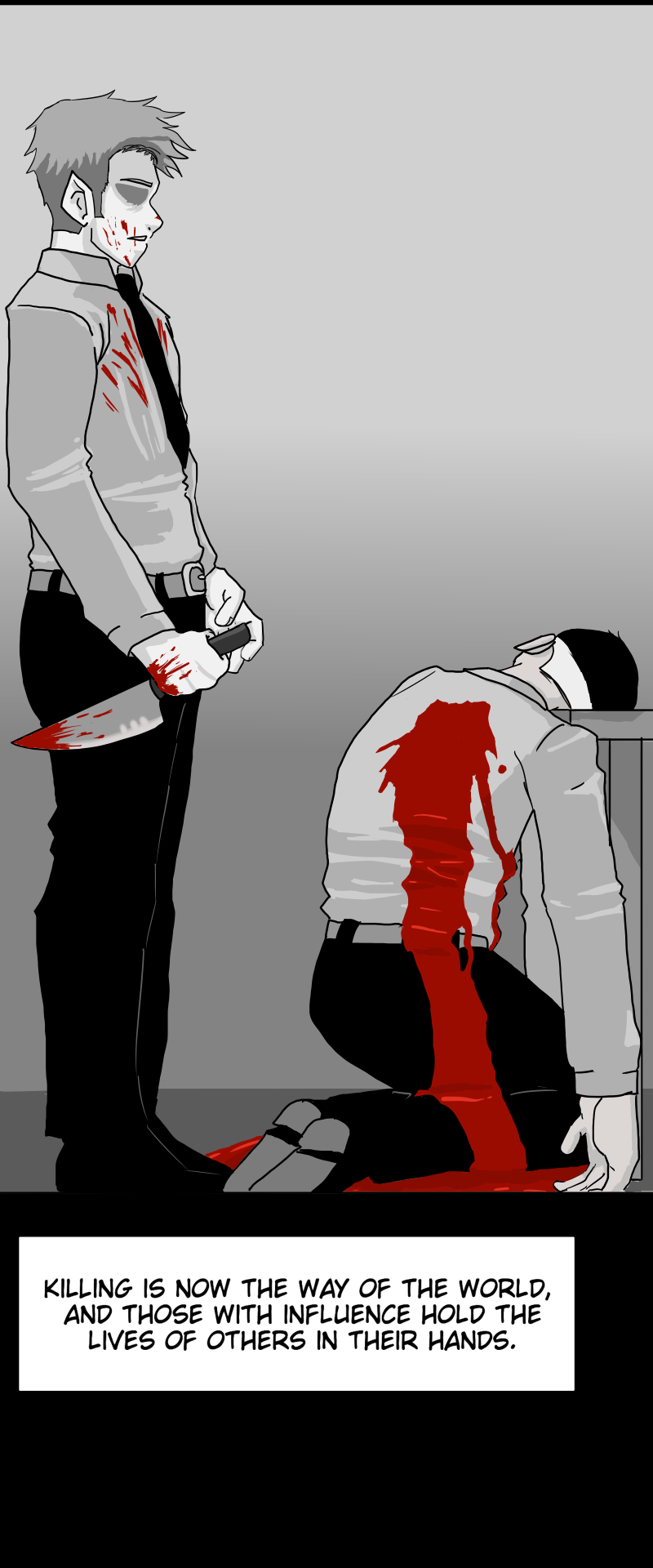 In the future, business is murder. The most powerful corporations use their vast wealth to take out competitors with contracted assassins. Sandy, a business world newbie and veteran assassin , steps on the scene with a lofty goal: make it to the pinnacle of influence and stop the cycle of killing created by the wealthiest corporations. Whether it be rival assassin groups, Homicidal coworkers, or his own violent urges, no obstacle is too great when it comes to Sandy's ambition.