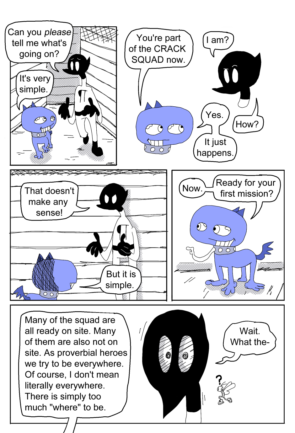 CRACK SQUAD IS HERE. Pilcrow is in way over his head. Also, his head (and torso and feet) are in the clouds. What will happen next? Who are these strange individuals? Answers soon to come. More questions soon to come. Thank you for reading. Don’t forget to subscribe.