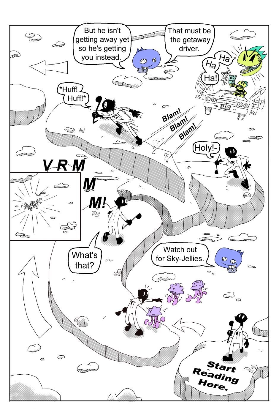A young hero named Pilcrow awakens one morning to discover he’s suddenly become a member of the legendary superhero team: CRACK SQUAD, and is thrust into a chaotic and dangerous mission to keep a fantastical sky-bank from being robbed.