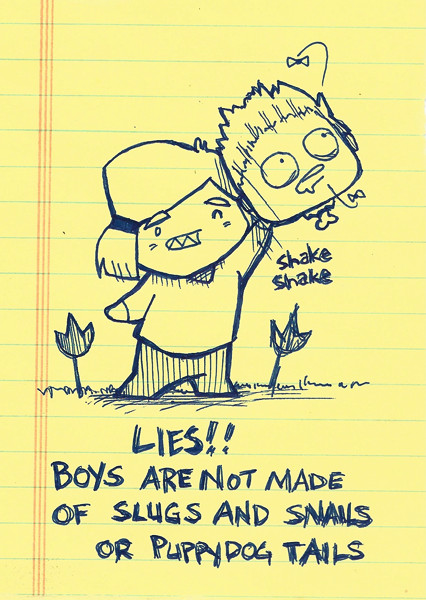 The media tells so many lies. They say boys are made of cool stuff like snails...then you cut one open and all you get is a sticky mess. Someone should write a congress person about this!