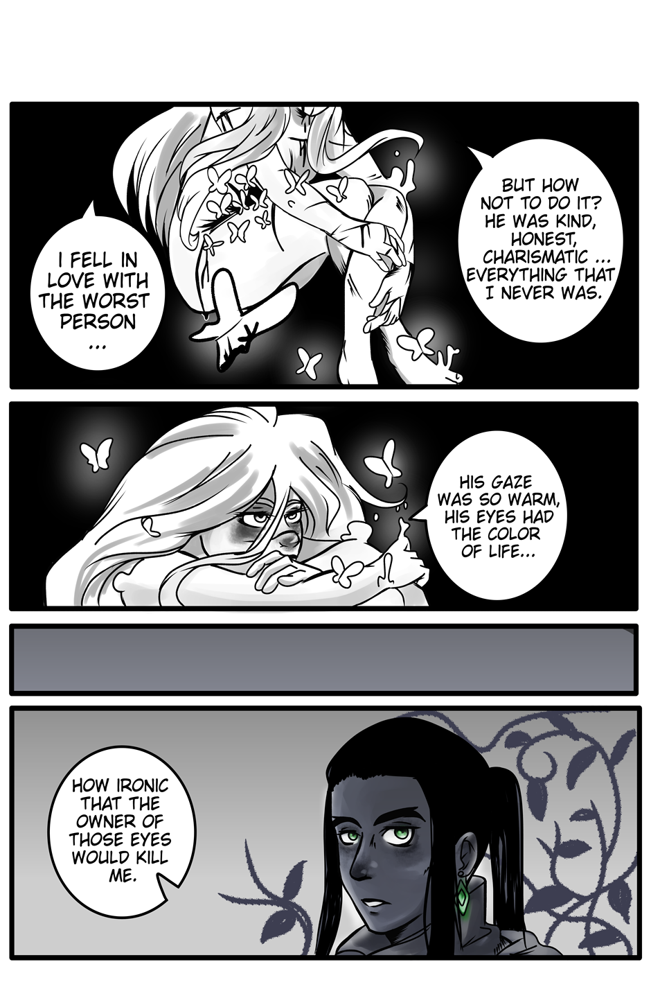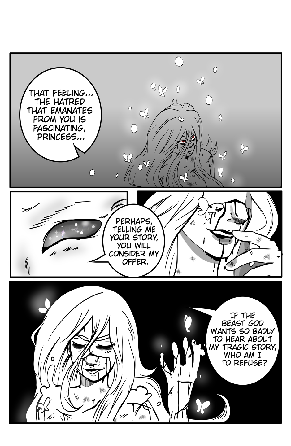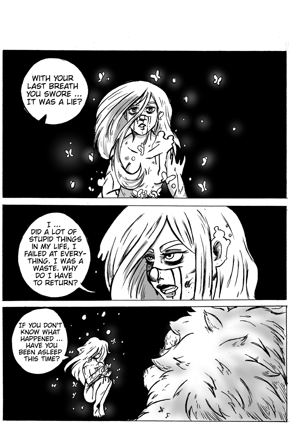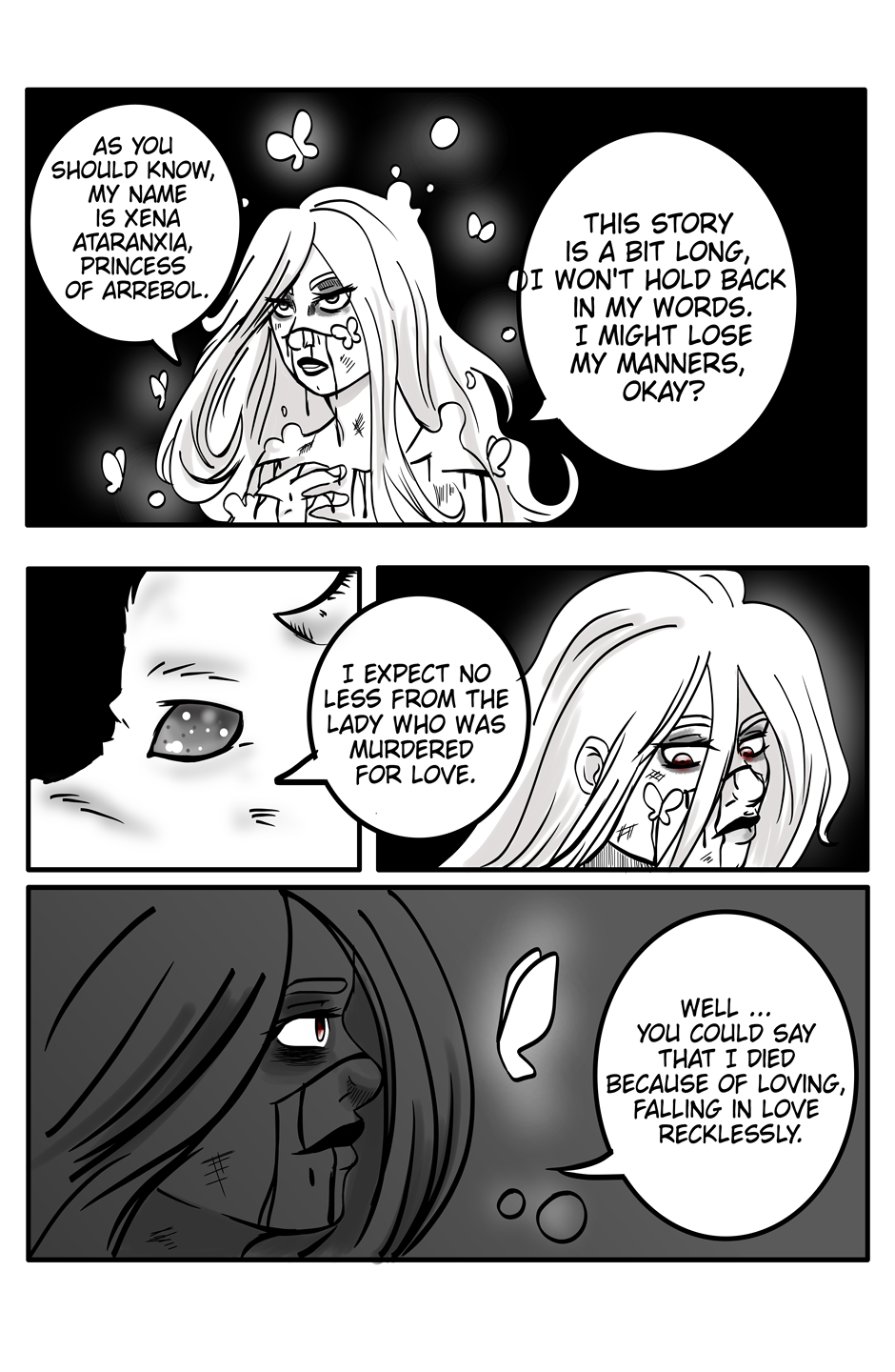 In the begining, she will tell us why she is here... Why she swore.
