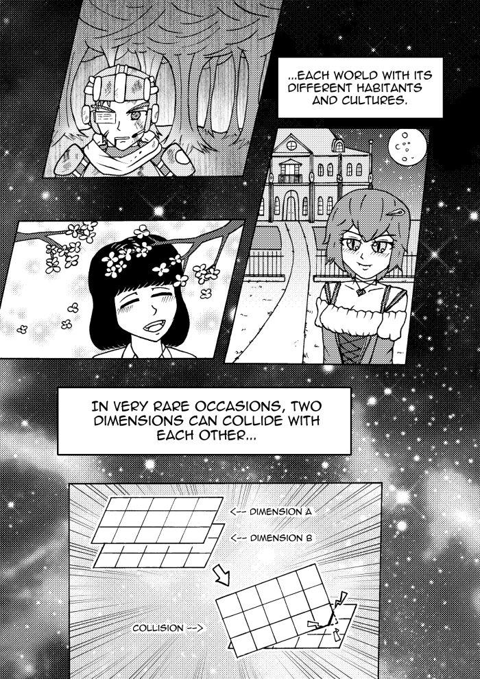 Dimensions: Worlds that are separated from other worlds by impassable borders. In very rare occasions, two worlds can collide with each other causing a temporary passage between two worlds.