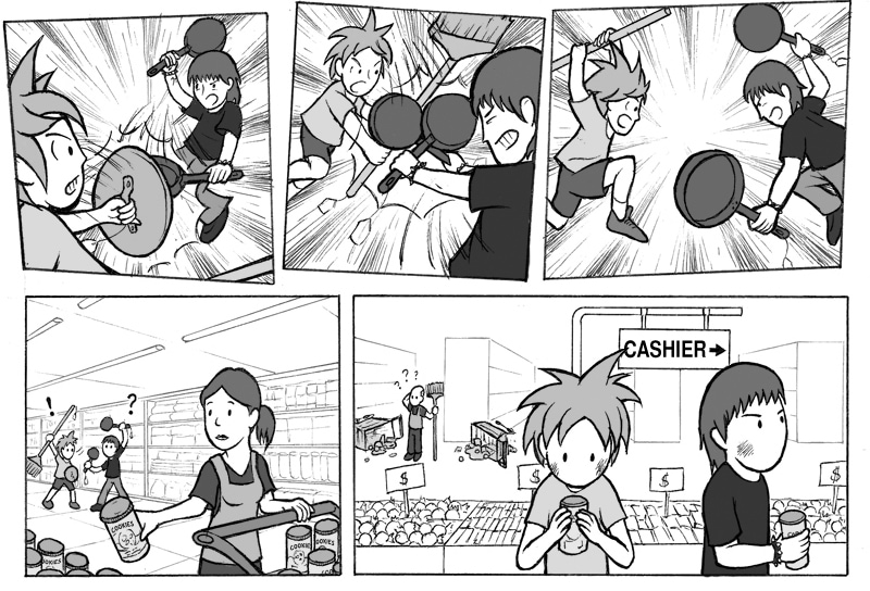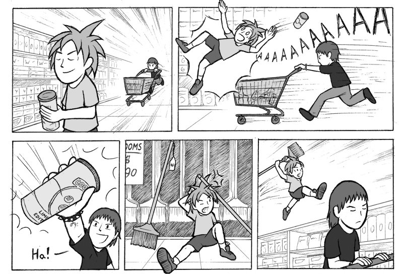 I made this one in a comics course I did back in middle 2014. It was supposed to be published in a magazine, along with the works of all students, but that never happened. I ended up publishing it myself, in one of my first comic strip compilation, "Tome Isto! E Mais Isto!", in September of the same year.