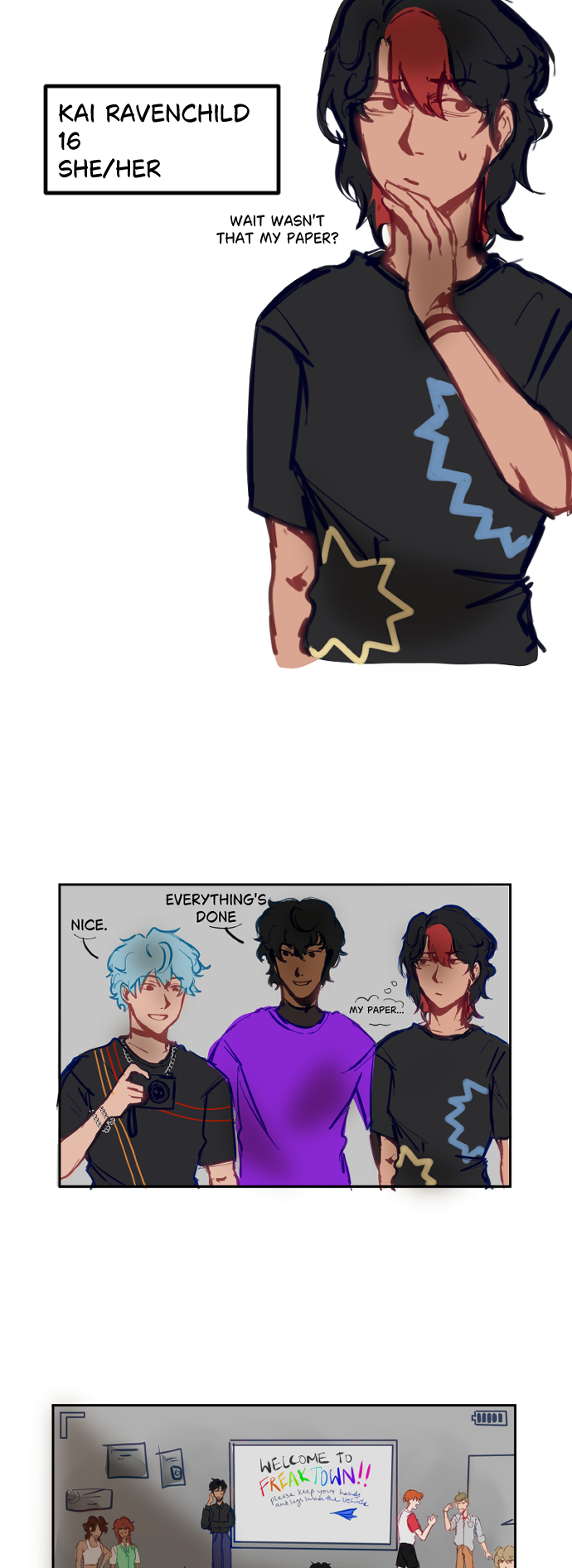 [sai wanted to say hi but we're not letting him(he's actually kai's sibling- canon event)]