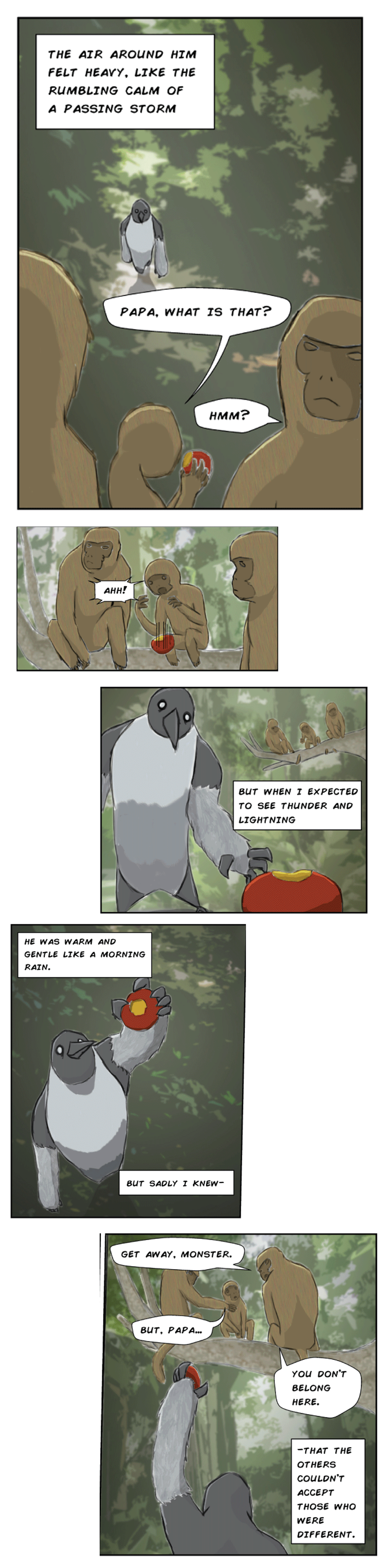 "Who was he? What was he? The air around him felt heavy, like the rumbling calm of a passing storm." From the eyes of Mak the monkey, witness the first chapter of the epic journey of Fury penguin.
