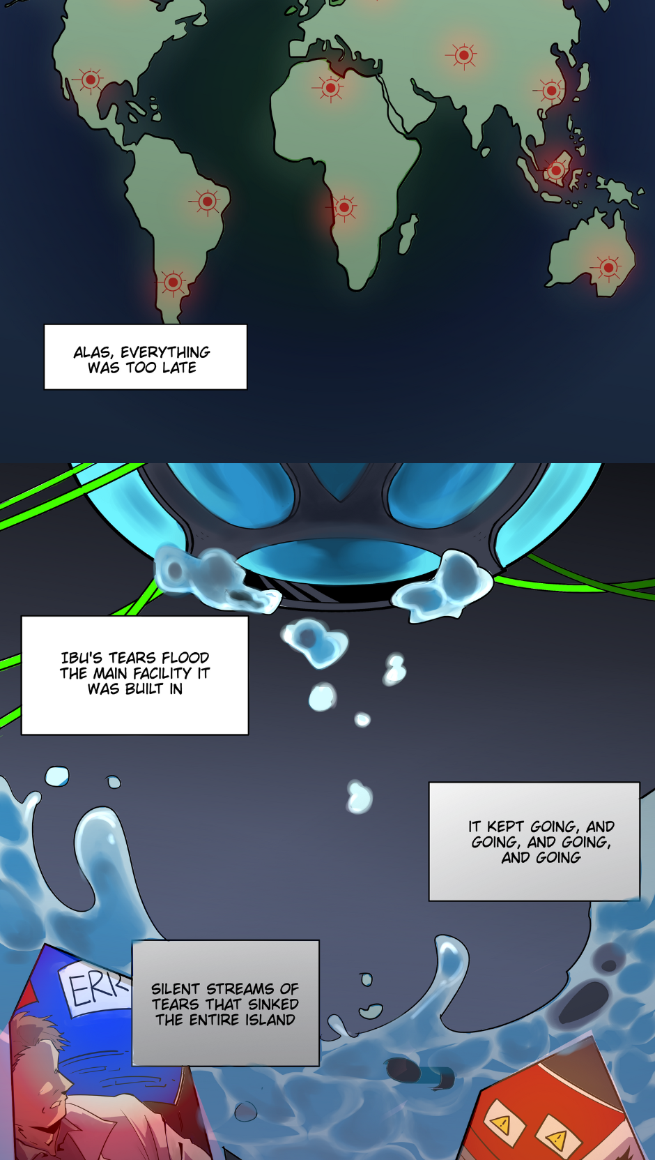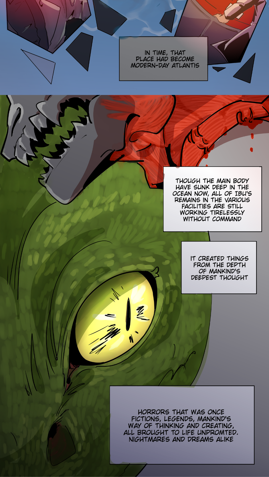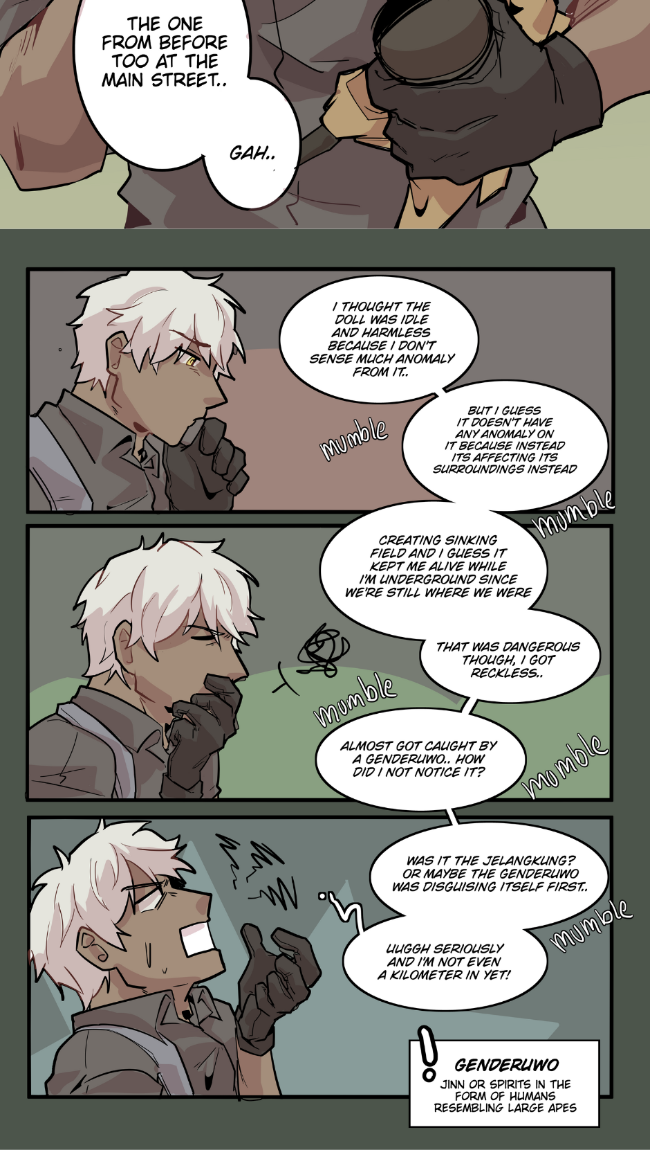 The combination of indonesian folklore and apocalyptic settings is so CREATIVE. Also your drawing and storytelling never fail to amaze me! I'm gonna continue to support you and looking forward for the next chapter! Ganba (。ì _ í。)💪💪💪