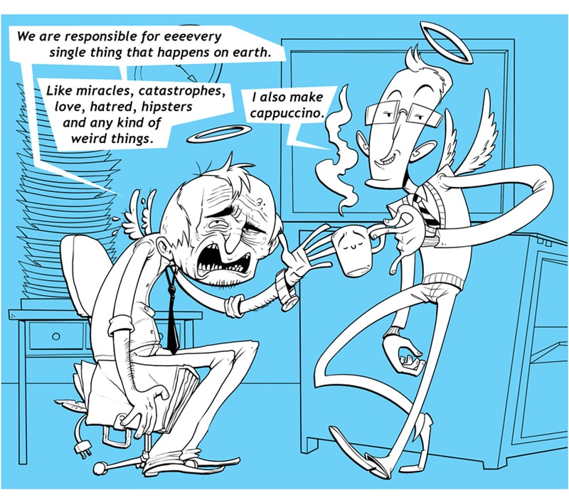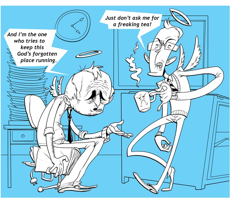 This is where the gods of all things work, where daily problems that are common in any office in the world are being viewed in a different angle of perspective. From above, in the God's Office, you will meet the God of Work and see how he tries to keep that place in its wheels.