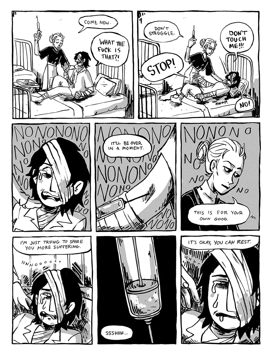 She is cute. I like when she is bandaged and in the hospital bed. I would minister to her...