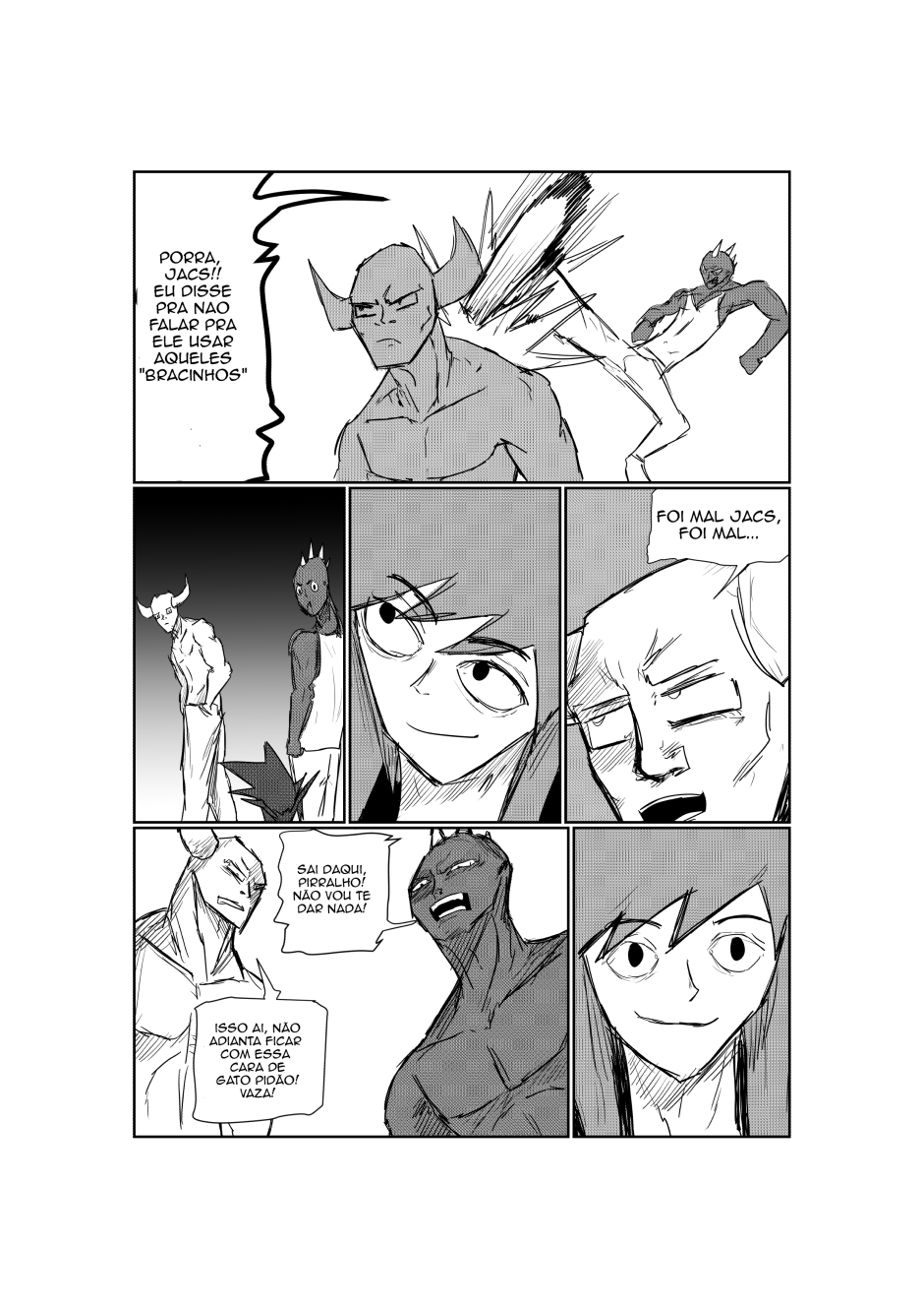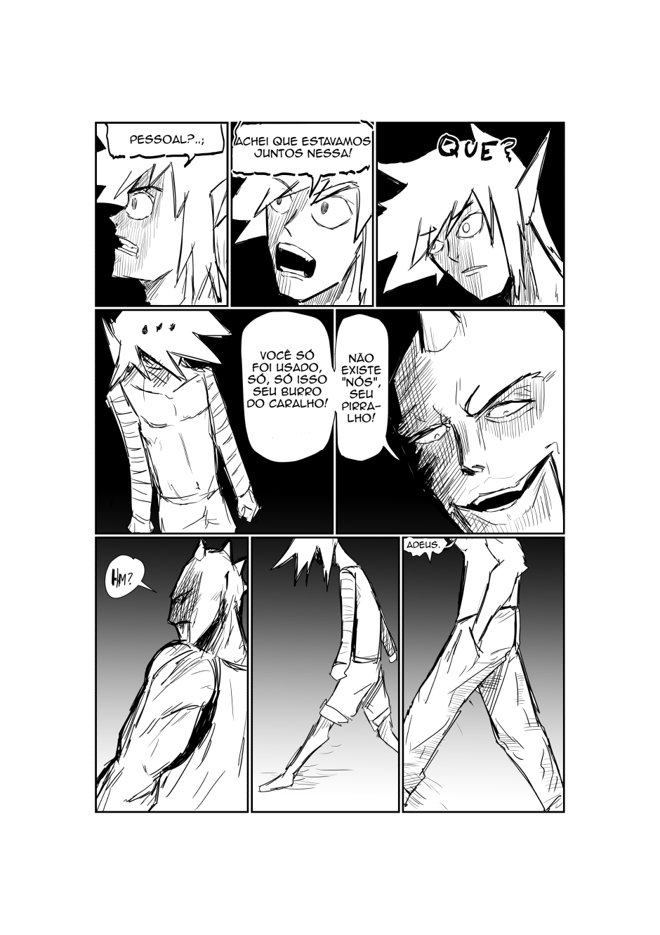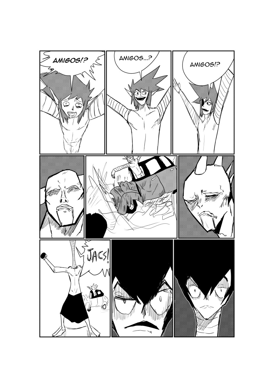 dois possivéis amigos e viu um careca
