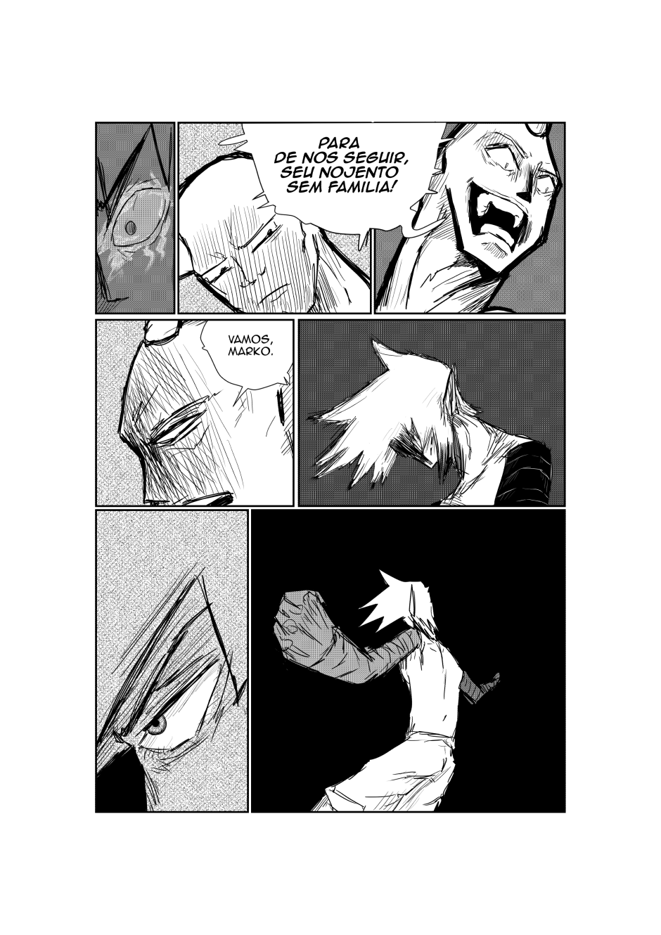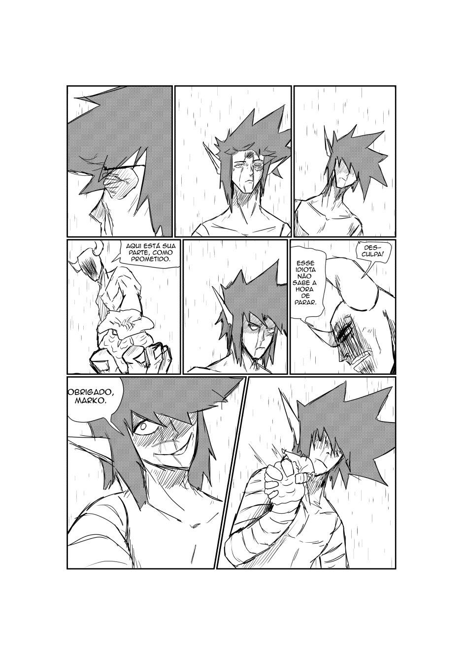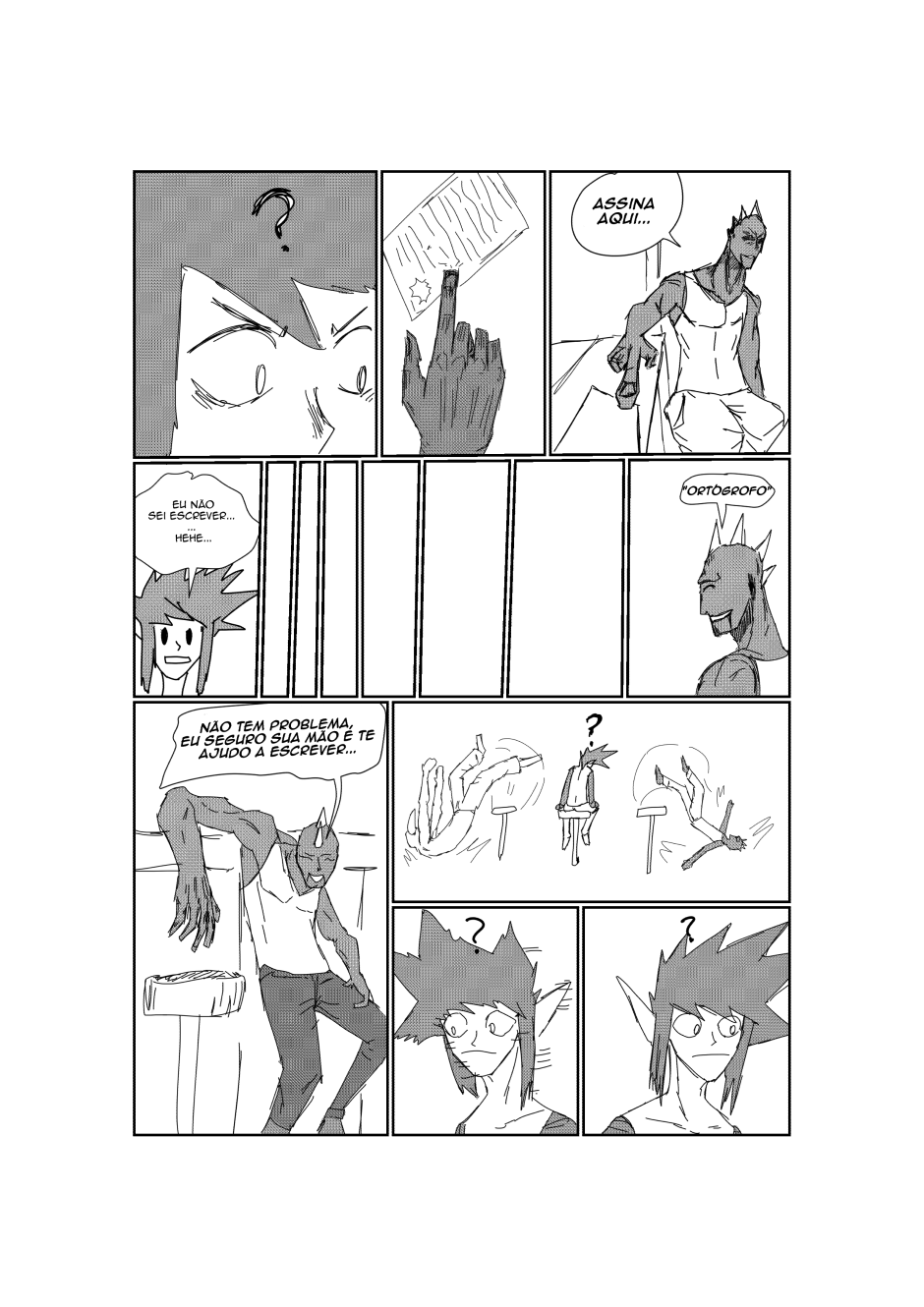 dois possivéis amigos e viu um careca