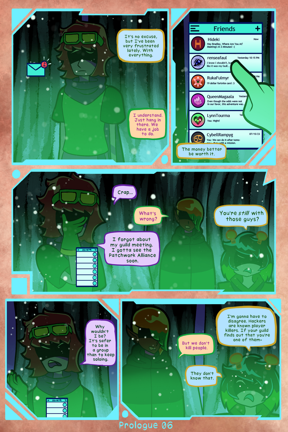 In comes Bradley0ren, a hacker who was sent in with two others to investigate from the inside. During his time in GRiMOiRE, he's befriended and grown attached to a guild called the Patchwork Alliance. These people have been sucked into an event where the head developer will grant the wish of any player who can defeat the Deities of Eos and obtain the fabled Grimoires from their towers. Bradley fears what is to come and is worried that his friends will get tied up in something they're not prepared to face.