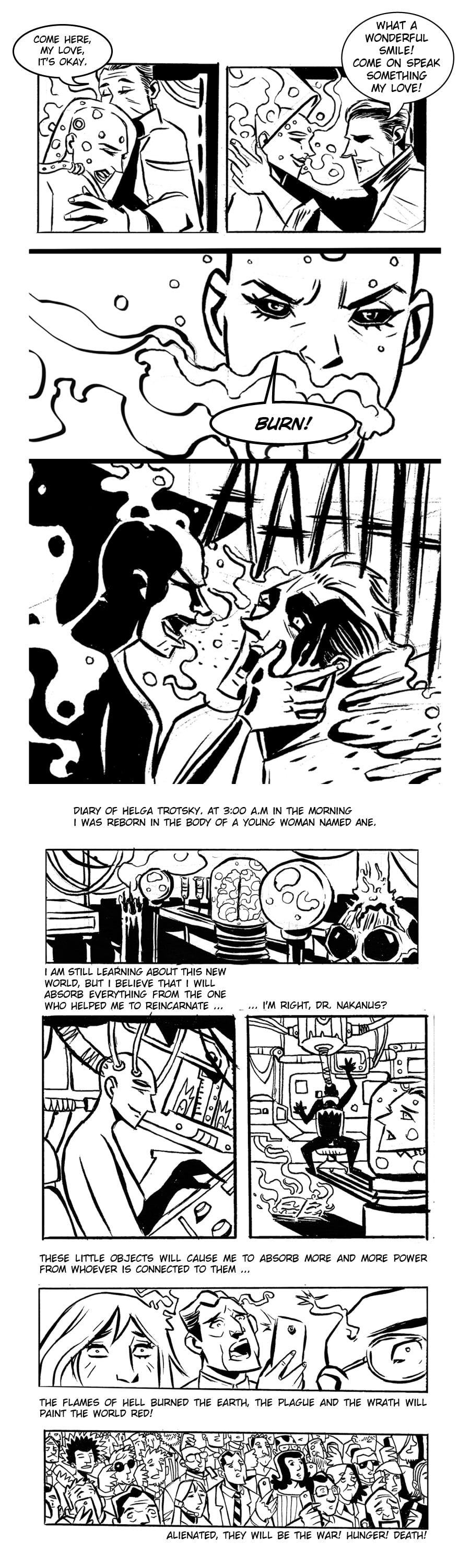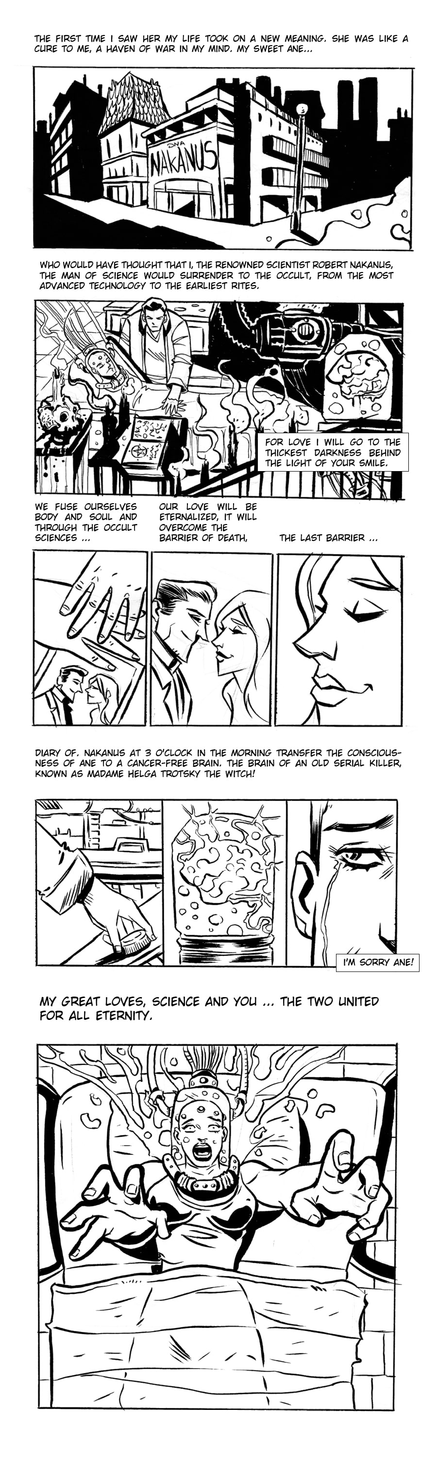 Inteligence Artificaos is about a Doctor who joined Black Magic and Science to bring his wife to live again. Text by Felipi Souza and Art by Alberto Pessoa