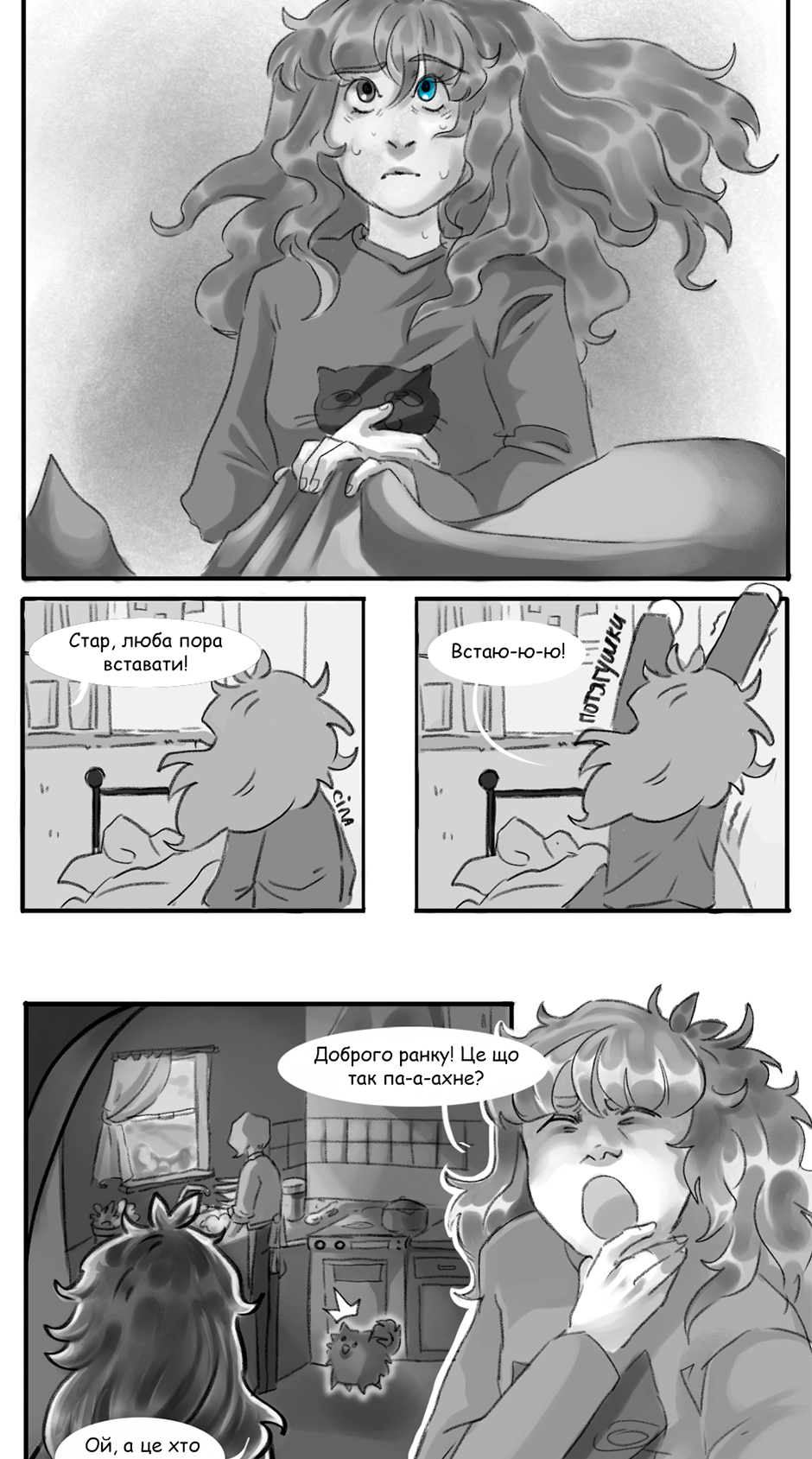 Вітаю з релізом! Стар дуже мила і цікаво дізнатися, що її чекає далі ✨ атмосфера виглядає одночасно мило та заворожуюче, навіть жахаюче (образи, тіні та тп) що створює цікаве відчуття від всього розділу!