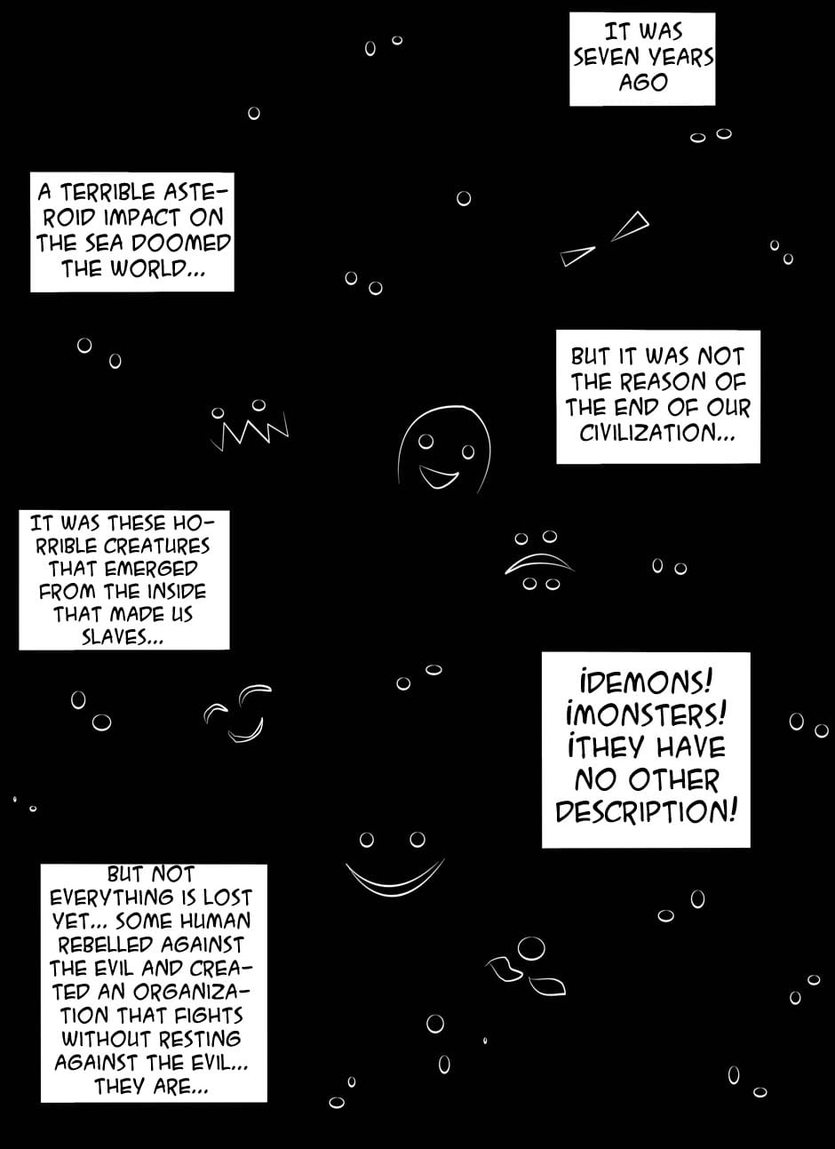 After a horrible disaster the world fell under the control of bizarre creatures. When it seemed to be the end there appeared a group of humans that rose up against the tyranny and started a tough fight against the evil for the freedom of the world. They're the KSNK ¿Will they be able to save us?