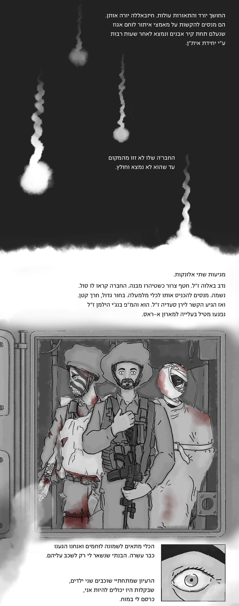 A short comic following Oren Adasha's story of his service in the second Lebanon war with the 601's recon platoon (IDF). סיפור מאת אורן אדשה איור: גל אדמון הנחיה: אסף חנוכה