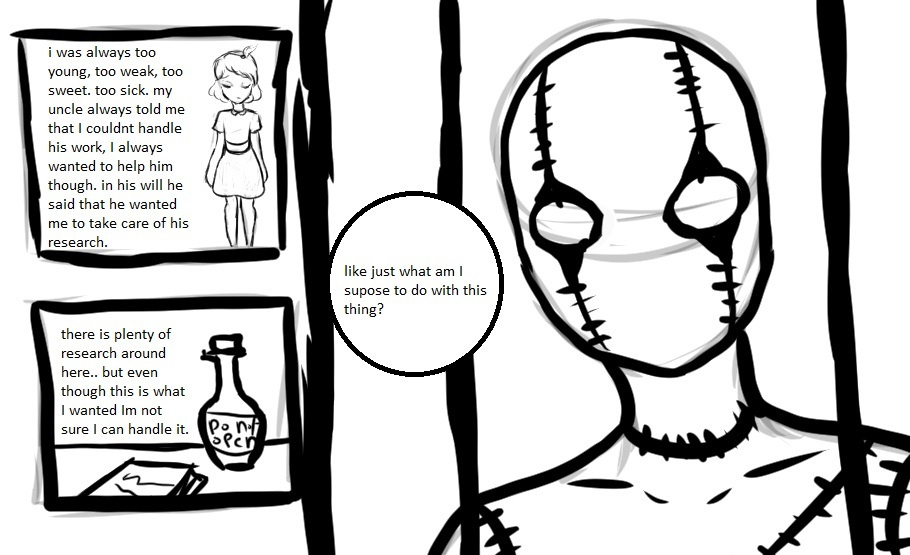 A young Sally finds herself left alone in the world after her only family (her uncle) dies, upon entering the lab, her late uncle kept her out of, she finds a few of his last experiments left behind.