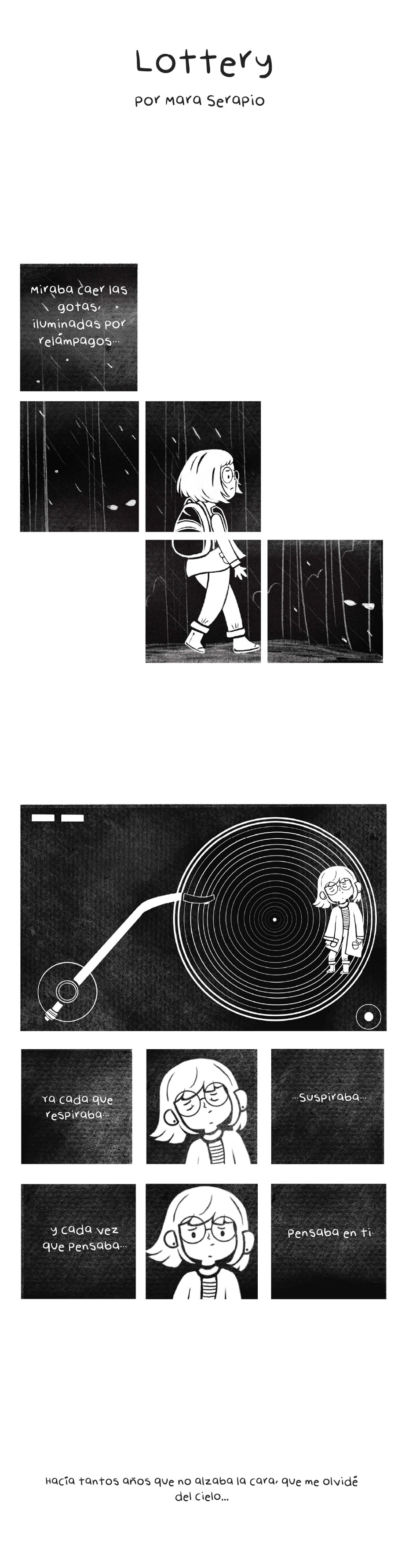 Lottery por Mara Serapio Ejercicio realizado en el taller Narrativa Gráfica impartido por Cecilia Beaven en Julio de 2020, con citas del libro Pedro Páramo de Juan Rulfo