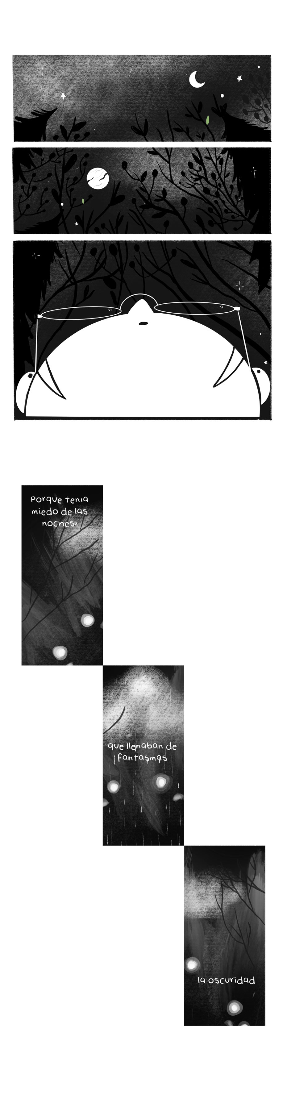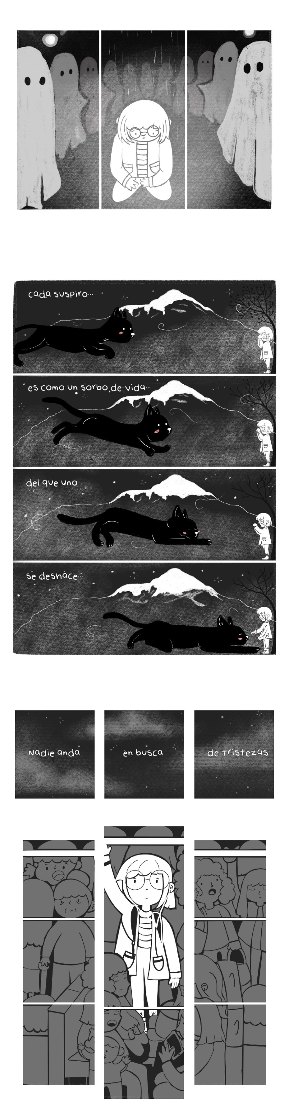 Yo no hablo español, pero me encantó tu estilo artístico, los cómics, el uso del espacio, ¡maravilloso! Suscrito!