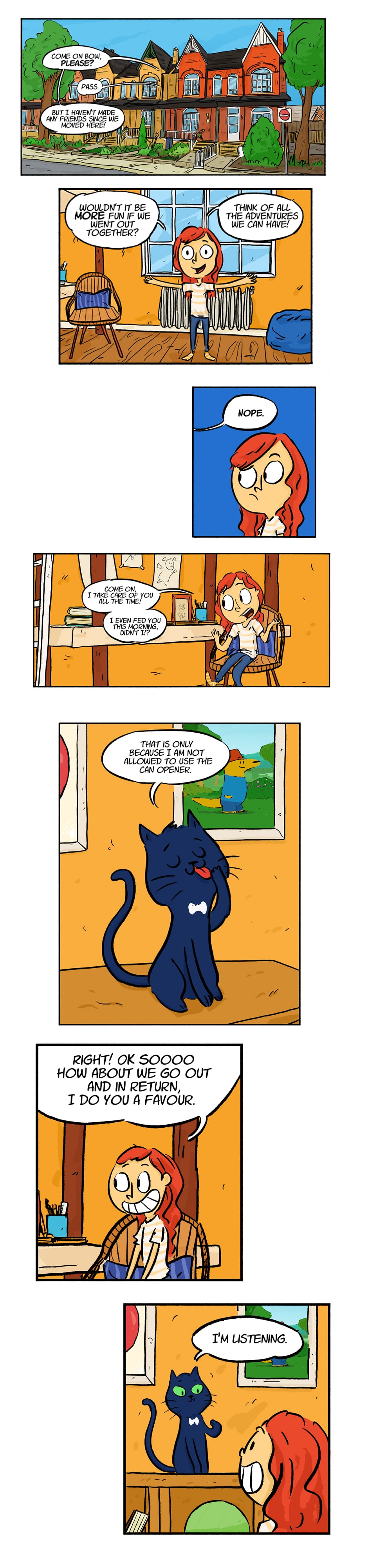 Lulu tries to convince Bow to head out with her and see the new city. Who knows, maybe they might even make a new friend.