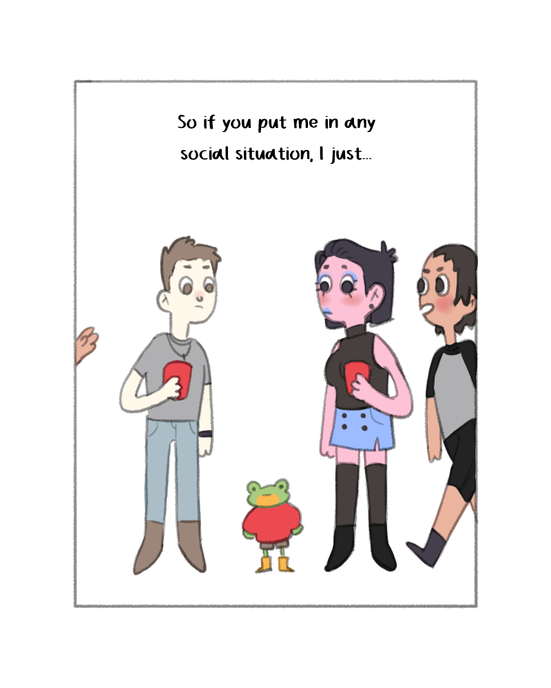 All the double panels of standing still but getting more sweating stressed are so affective and silly I love the way your comics are done as whatever works the best