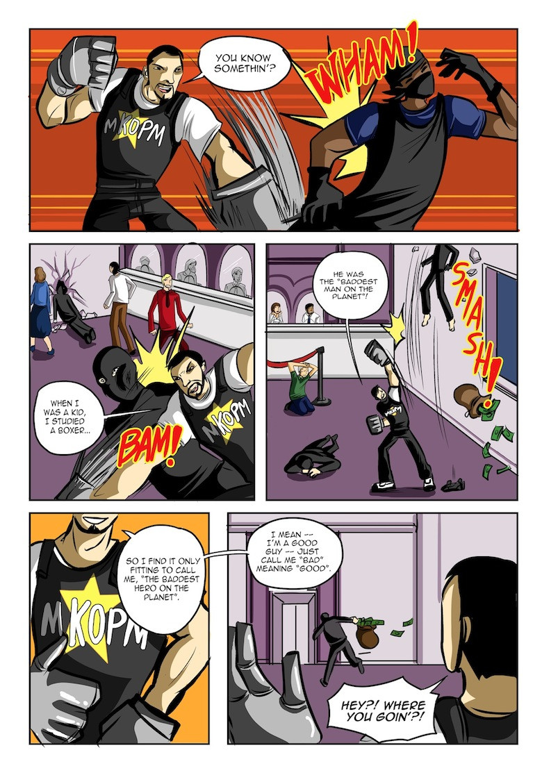 "THE ADVENTURES OF MIGHTY K.O. PUNCHMAN AND SIRR" is a superhero/comedy adventure comic, Created and Written by Sal Brucculeri with Art by Monique Blaize. This comic is based on the odd superhero duo of Mighty K.O. Punchman, a witty, bash-and-smash superhero skilled in all forms of hand-to-hand combat armed titanium boxing gloves and a titanium chest plate, and SIRR, the brains of the duo. SIRR is a sarcastic, pessimistic genius, who has the ability to fly with his faulty cape and read minds, though he sometimes makes mistakes with his interpretation of the mind he read. A fun-filled comic for all ages!