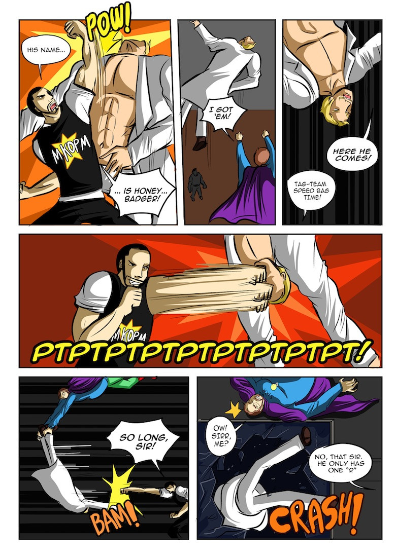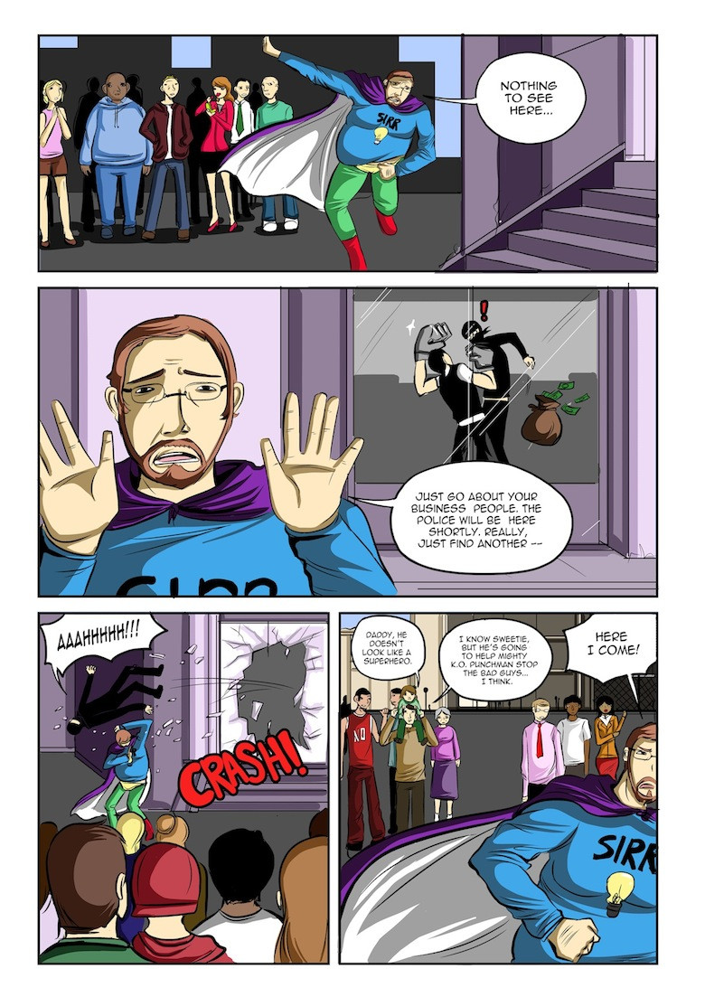 Join Mighty K.O. Punchman and SIRR in there very first issue! They are the odd-couple superhero bash-and-smash duo that comics of all forms have been missing! This comic is jam-packed with action and comedy that all comic readers can enjoy!