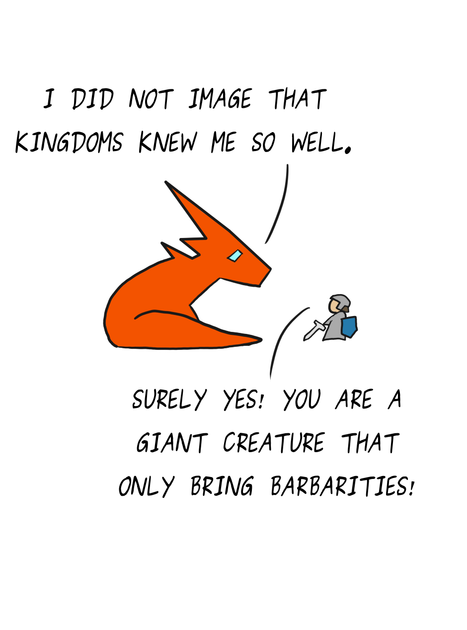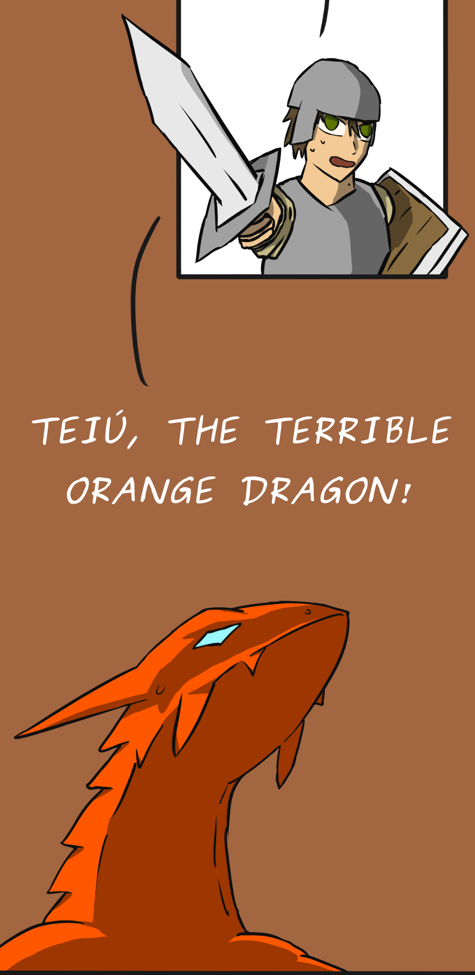 Snapshots from the life of an orange dragon living in the lands of a fantastical medieval world. He brings confusion to other people and magical beings, all because he has the habits and customs of a classic dragon. This is Teiú.