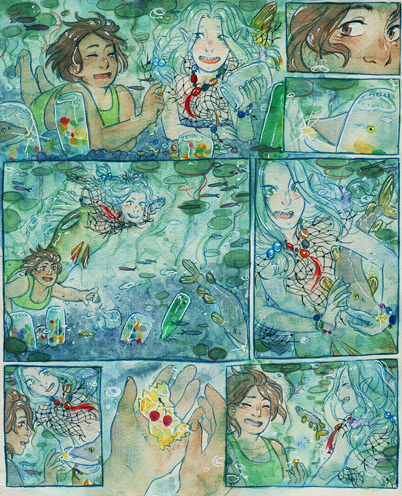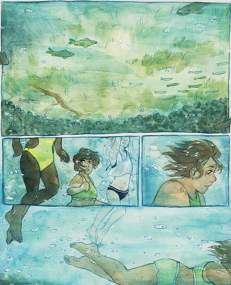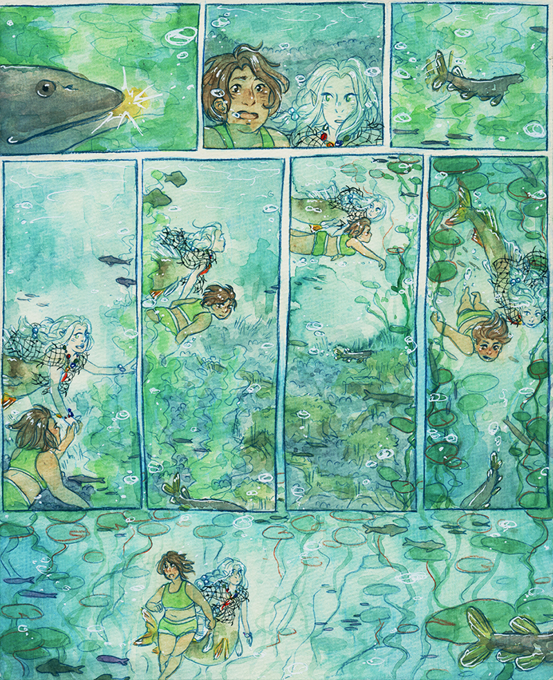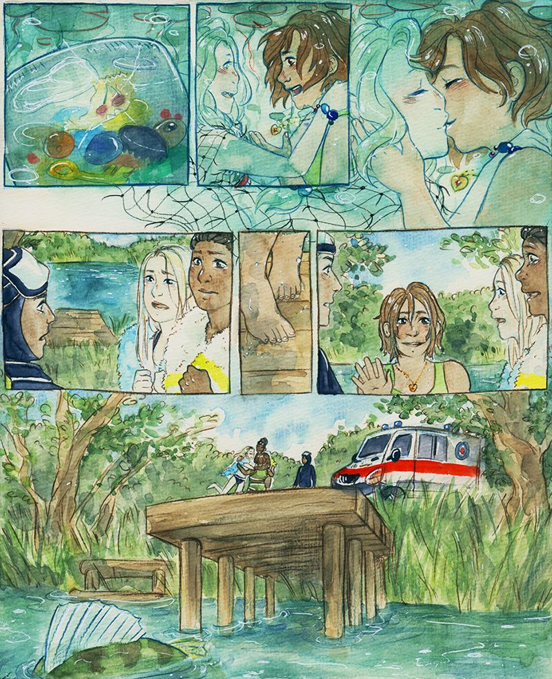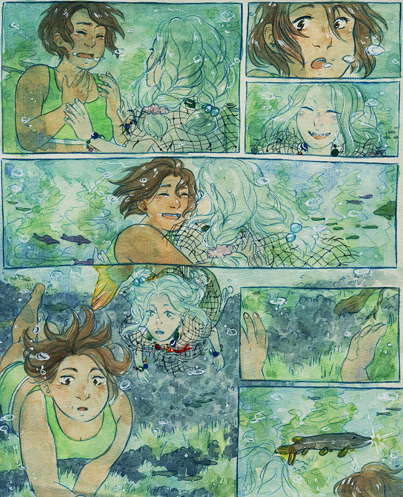Ooh, I remember reading this in Lilies! But I have the b&w book so I've never seen it in colour before! It's absoltely beautiful. Is this watercolour? I can't imagine how long painting all these panels must have taken! I hope she goes back often to visit her new girlfriend- and that they figure out the language barrier!
