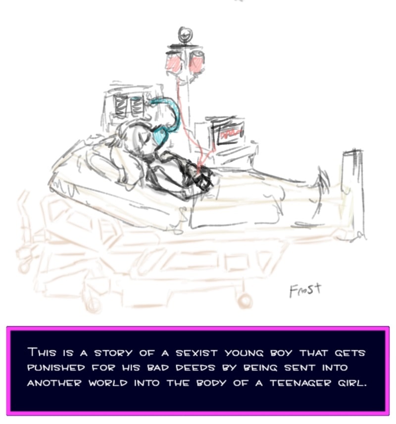 A teen boy is stuck in a woman's body from another world.