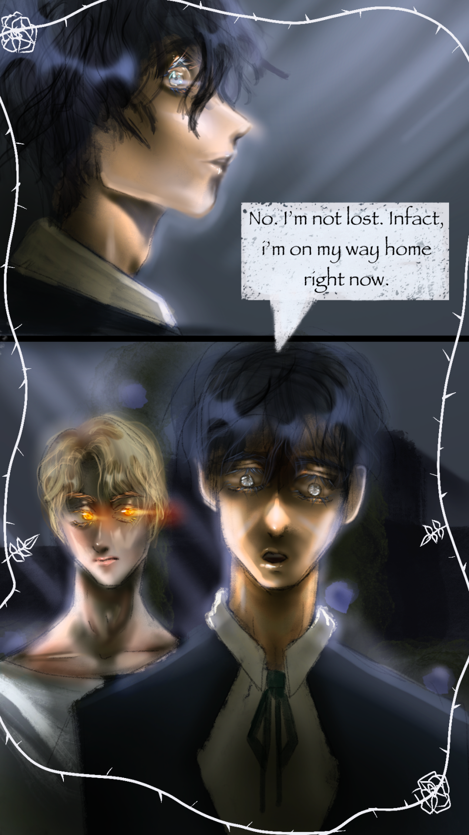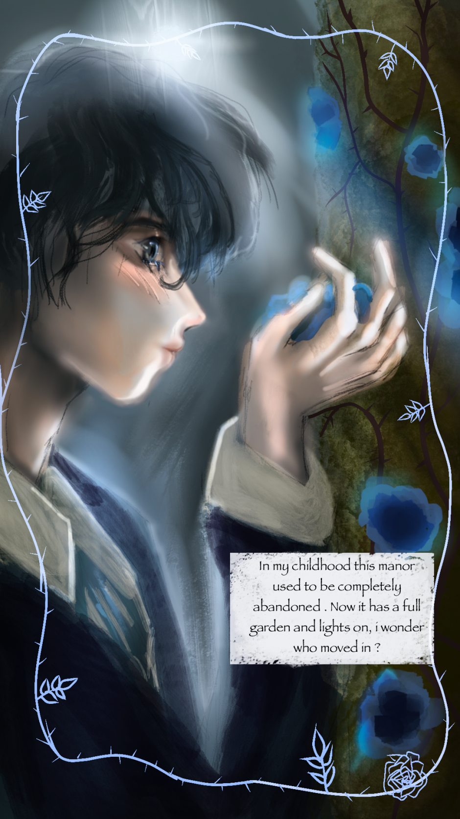 [FOCUSING ON WEBTOON VERSION. WILL FIX TAPAS SERIES LATER. MUCH MORE EPISODES ON WEBTOON ATM.] Silas is a young man who inherited his parents' summer home in the rural countryside of Dover, England. While moving there, he comes acrossed an old manor that used to be completely abandoned, but now has a lush garden of blue roses. The new owner of this manor isn't quite human either.