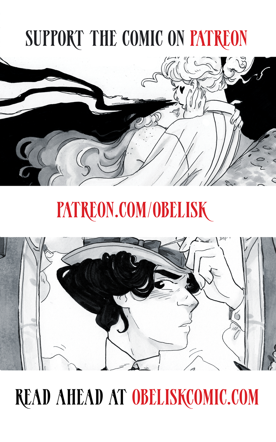 Obelisk is a lush lesbian vampire romance/horror comic intended for readers 16 and up - you can read the full, uncensored version at obeliskcomic.com!
