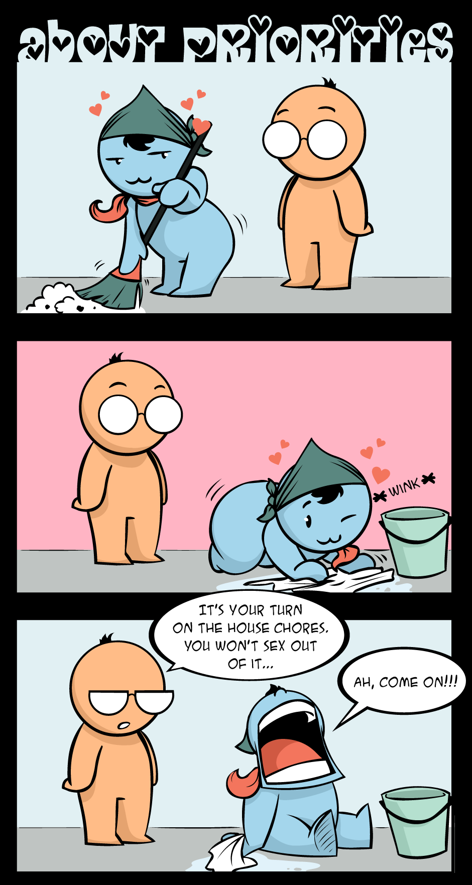 Daily life can be dull. But every now and then some little things happen that make it shine brighter than anything. Except when those little things are cat poop... on the couch. So come clean it with the stoic Oran, his adorable husband Blu and Salem, the black cat, every thursday!
