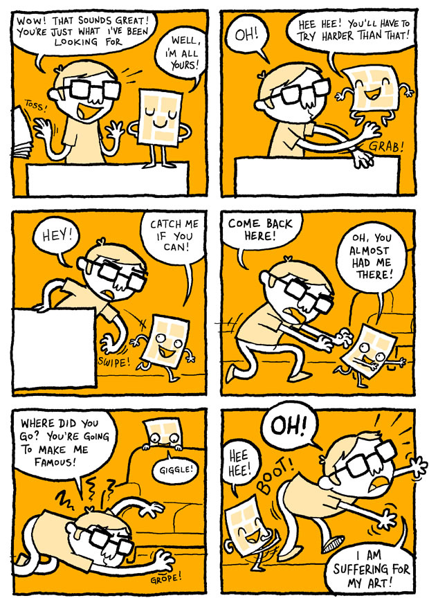 Two rules for making comics: 1) don't let the perfect be the enemy of the good. 2) always carry a rolling pin.