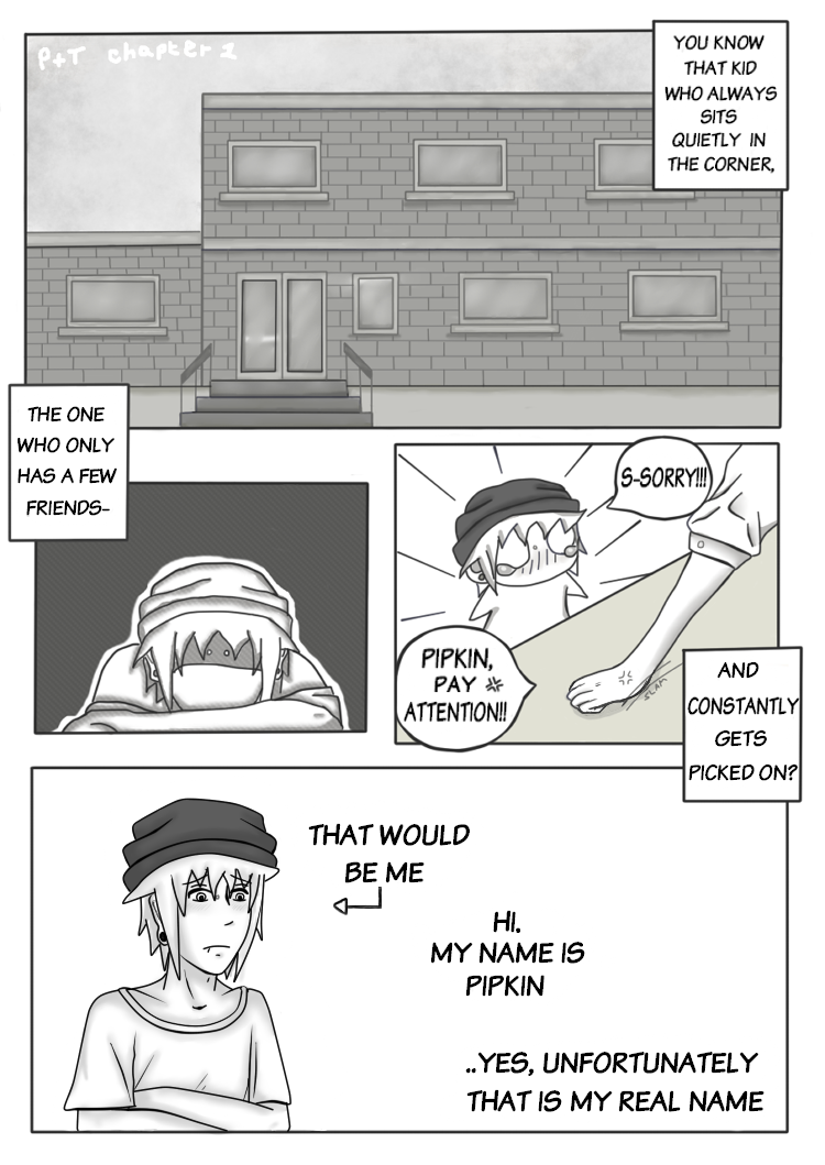 P+T is a project that was started back in 2010 and first made it's way onto the internet in 2011. It's the story of Pipkin (Pip), an 18 year old college student who has been bullied all of his life, for his name and hair colour.