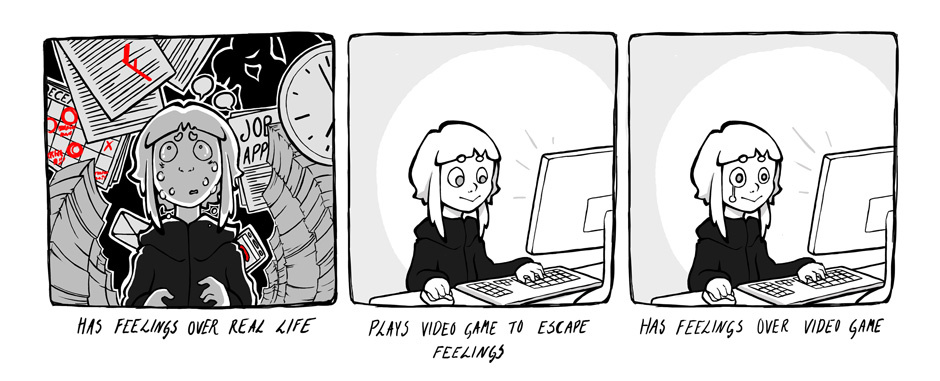 In my spare time I like to escape my feelings by getting bigger feelings