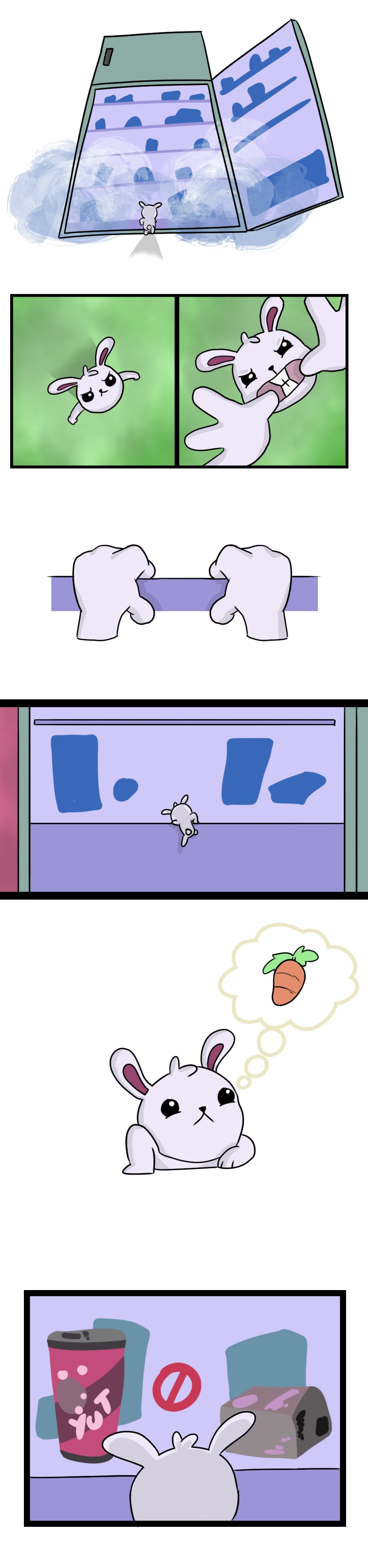 Pucky is hungry and will look for something to eat in the fridge