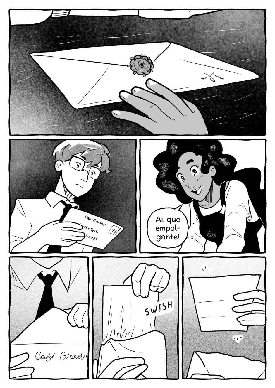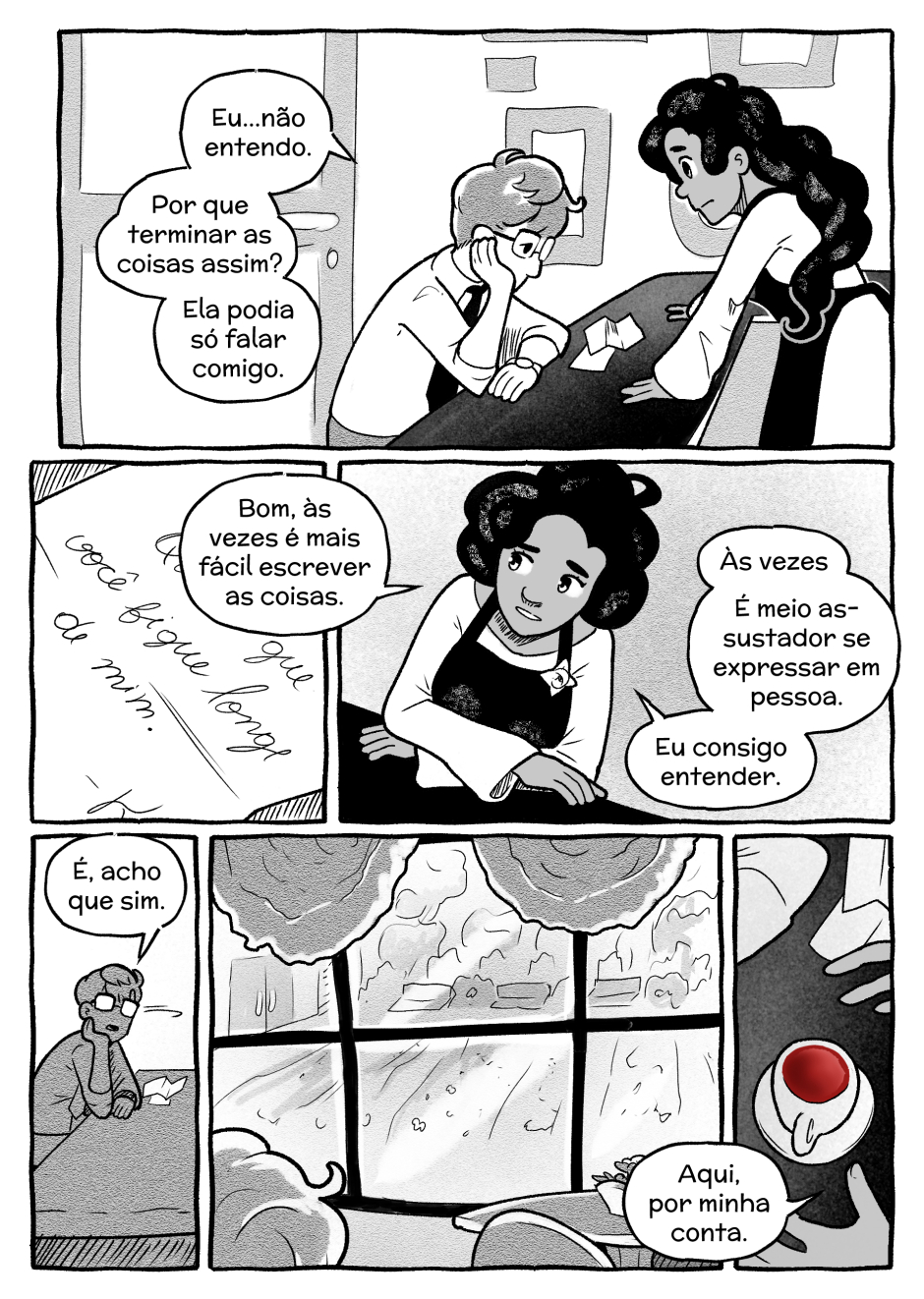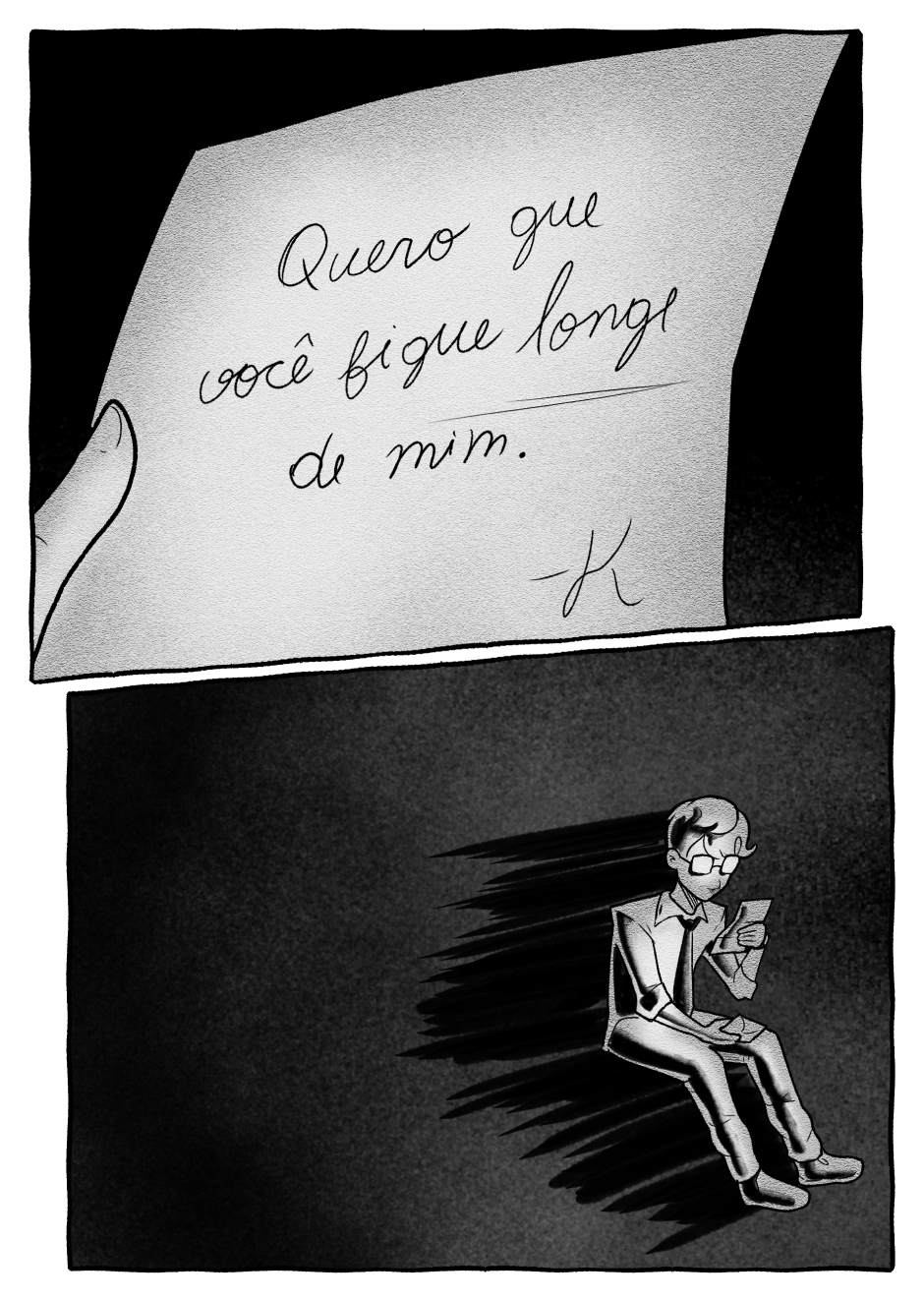 Quando eu achei que ia começar uma grande história de amor por cartas: "fique longe de mim" kkkkkkkk a arte tá linda e minha ansiedade agradece se você continuar postando❤️