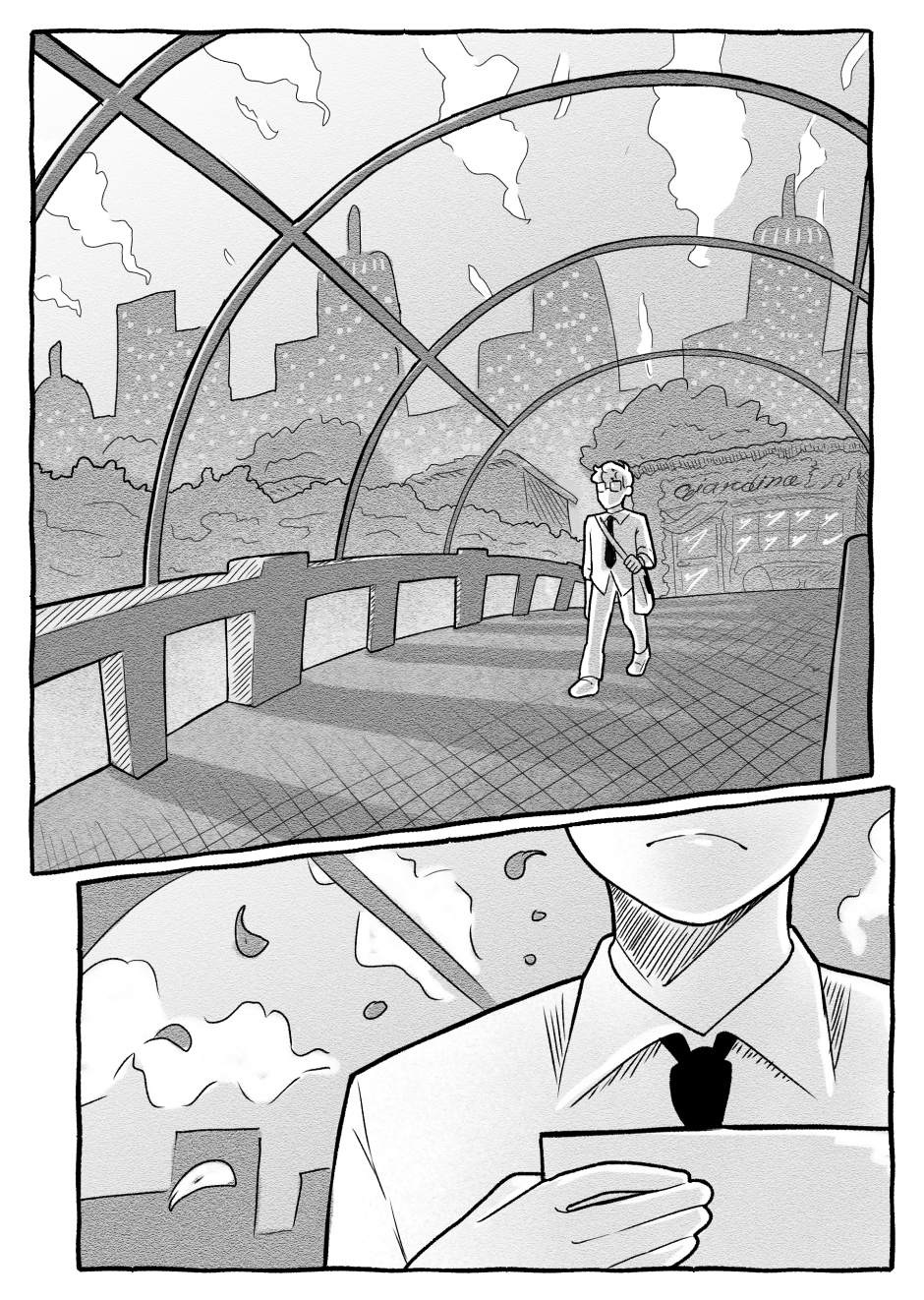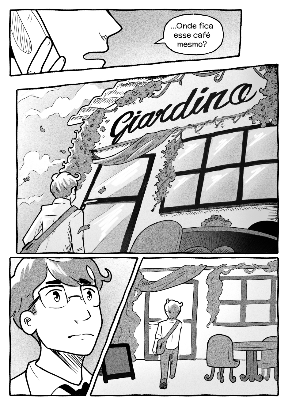 Buscando respostas sobre uma pessoa desaparecida, Emilio arranja um emprego no último local onde ela foi vista: o enigmático Café Giardino. Ao conhecer seus donos e clientes, torna-se claro que o estabelecimento é o ponto em comum de vários outros mistérios na cidade. Agora, o novo funcionário é o único capaz de investigar o que realmente acontece por trás das cortinas.