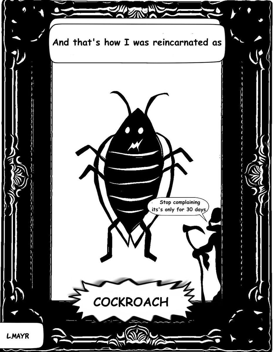 If this were a hero origin story, I would probably save the world reincarnated as cockroach. But actually, I'm just trying to save my own butt from the newspapers and exterminators.