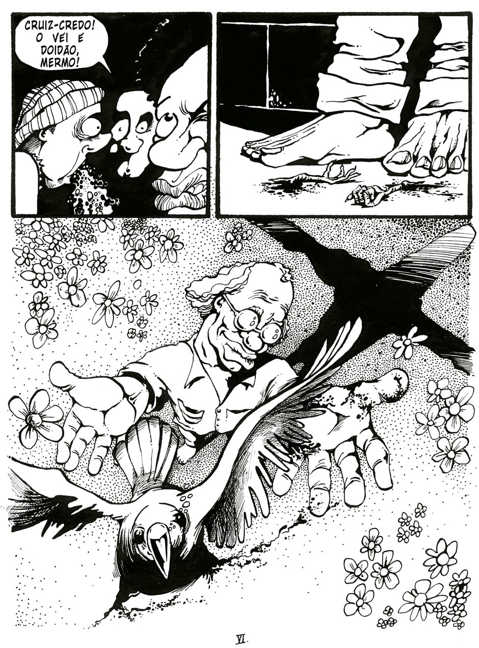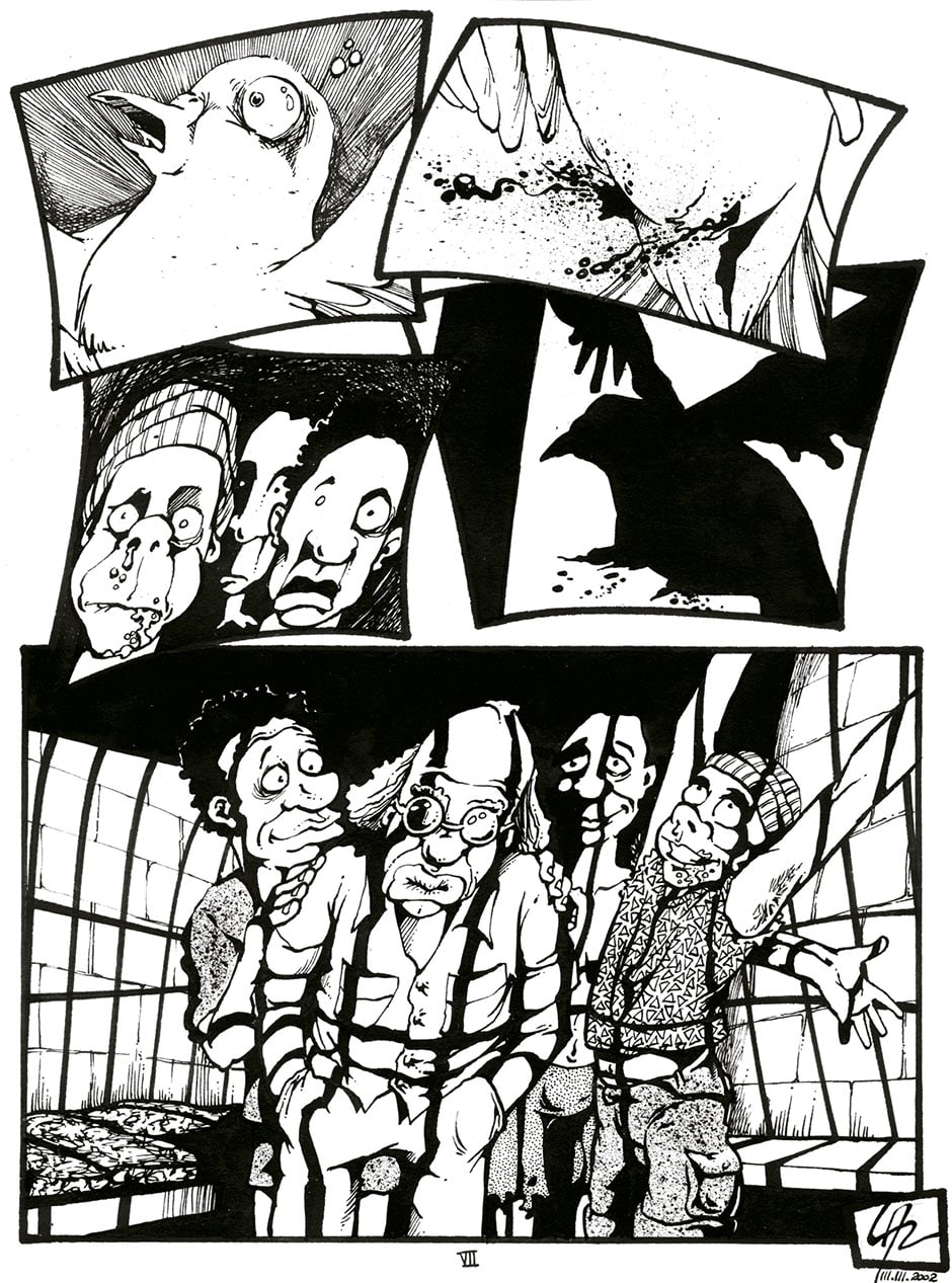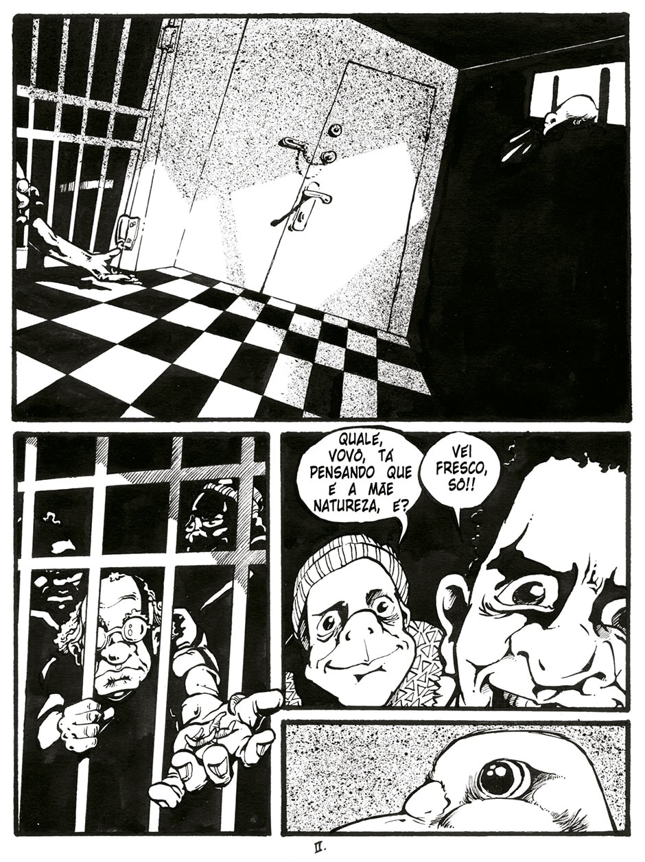 Essa HQ foi produzida originalmente para a revista Grafitti 76% Quadrinhos, que abordava como tema o sistema penitenciário no país, na época. A desenhei no final de 2002 e a relancei, depois, na minha revista Bacanal de Estrelas, quando da comemoração dos meus 25 anos de estrada nas HQ's.