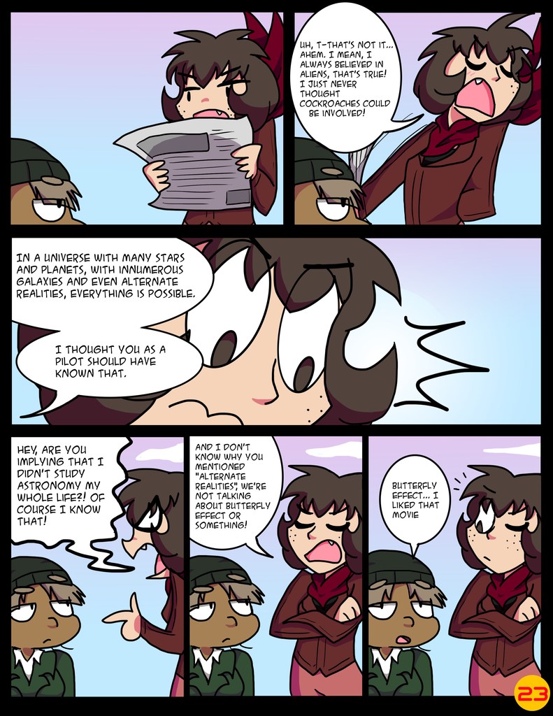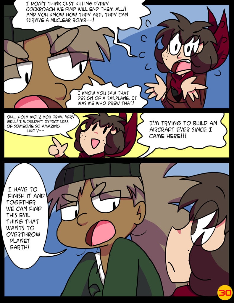 At long last, I have a webcomic released to the public. It was made in 2017, and since then a lot of changes have been made, and here it is being released in 2021. It was originally going to be released with the game's demo, but as game development is something that takes a lot of time and I really wanted to see the public's reaction to my story, I decided to release it before that. My many thanks to some friends and fans that I have managed to attract over the years and have helped - and motivated - me to move forward with it, and I hope to attract more people now with this brief introduction to this curious world where Air Force pilots and engineers battle against giant alien bugs.