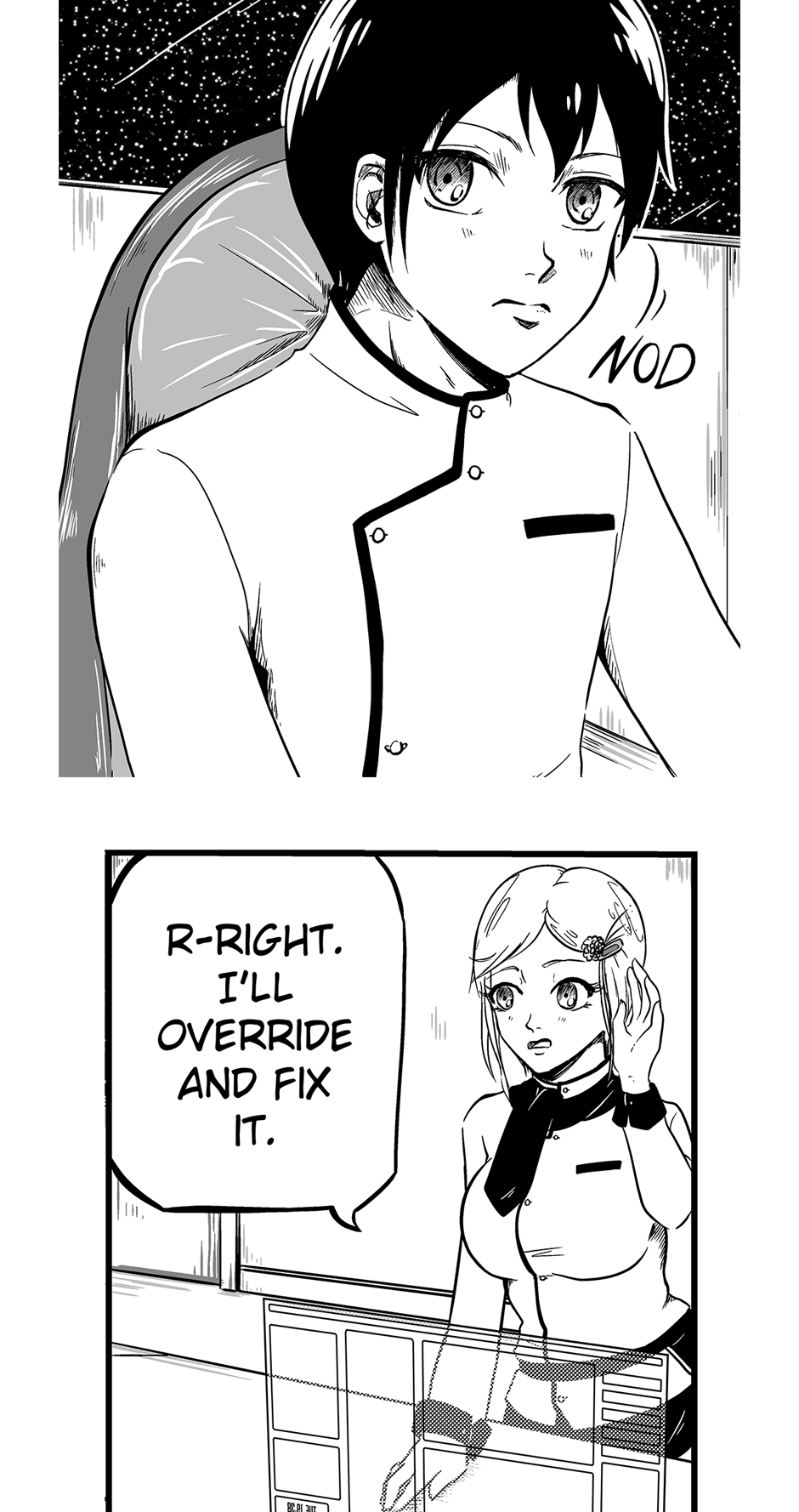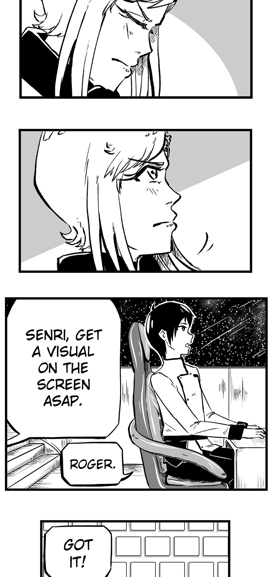 Shion is the captain of a space battleship and has a rare ability to control it with her mind, giving humans a small advantage against the draconic aliens who are trying to invade Earth. Her brother, Senri, works as the navigator and becomes suspicious as he finds evidence of a traitor, but the reality is far more fearsome than anything they could have imagined.