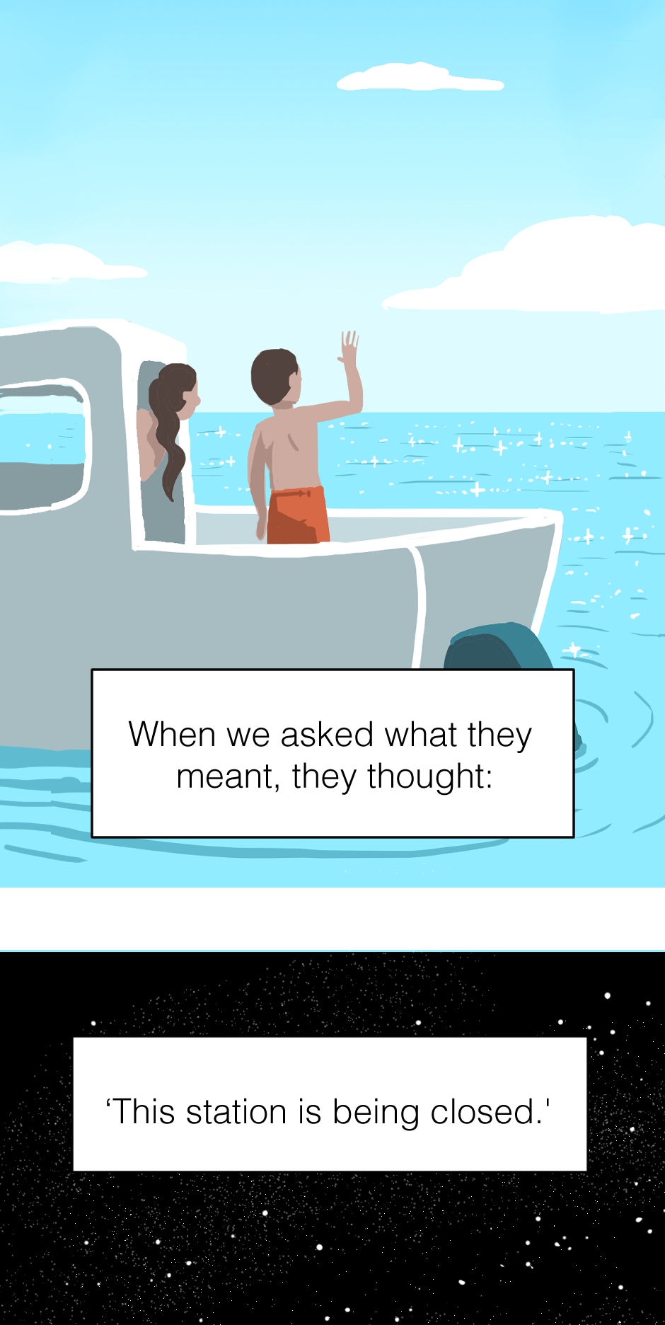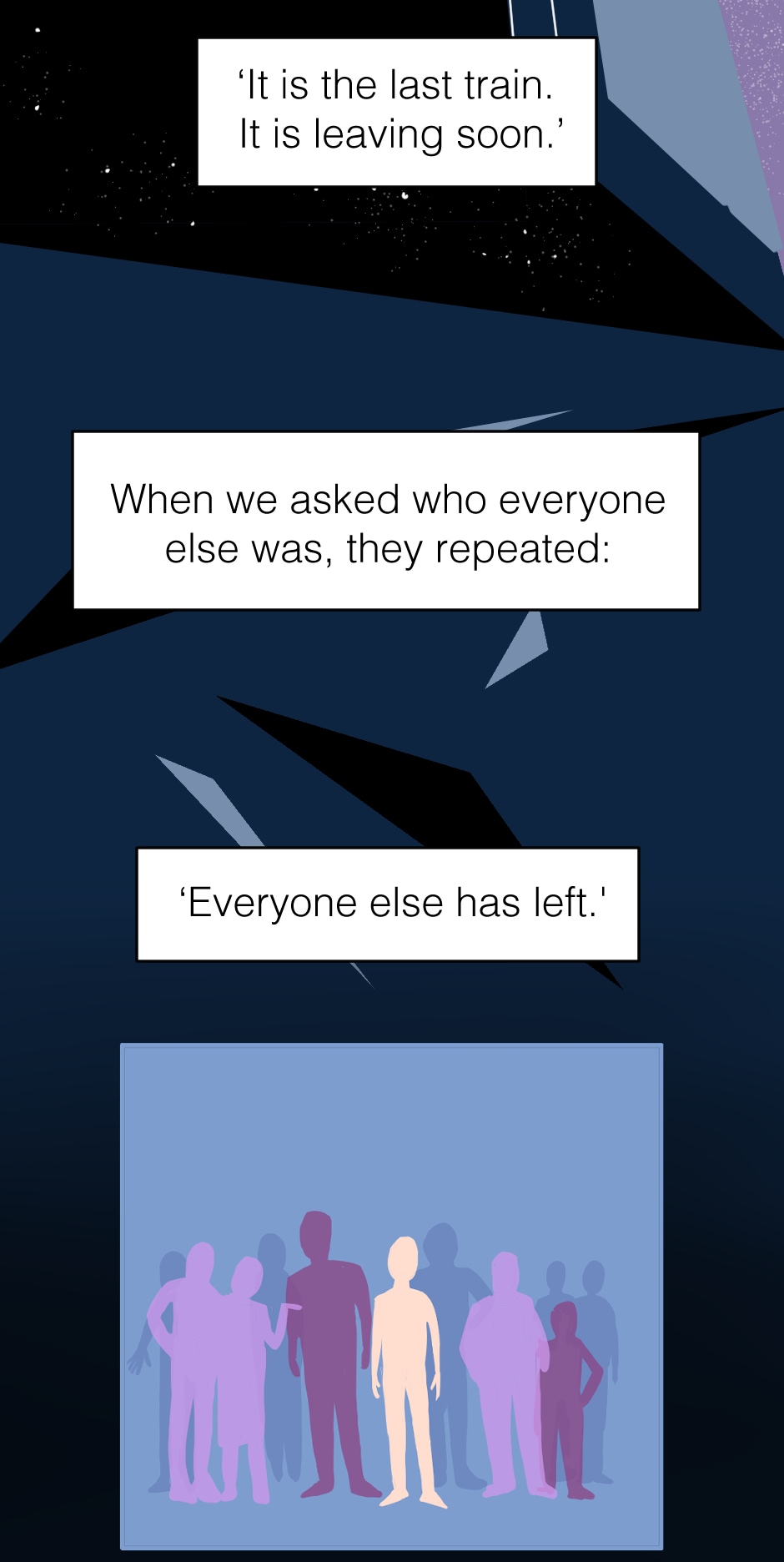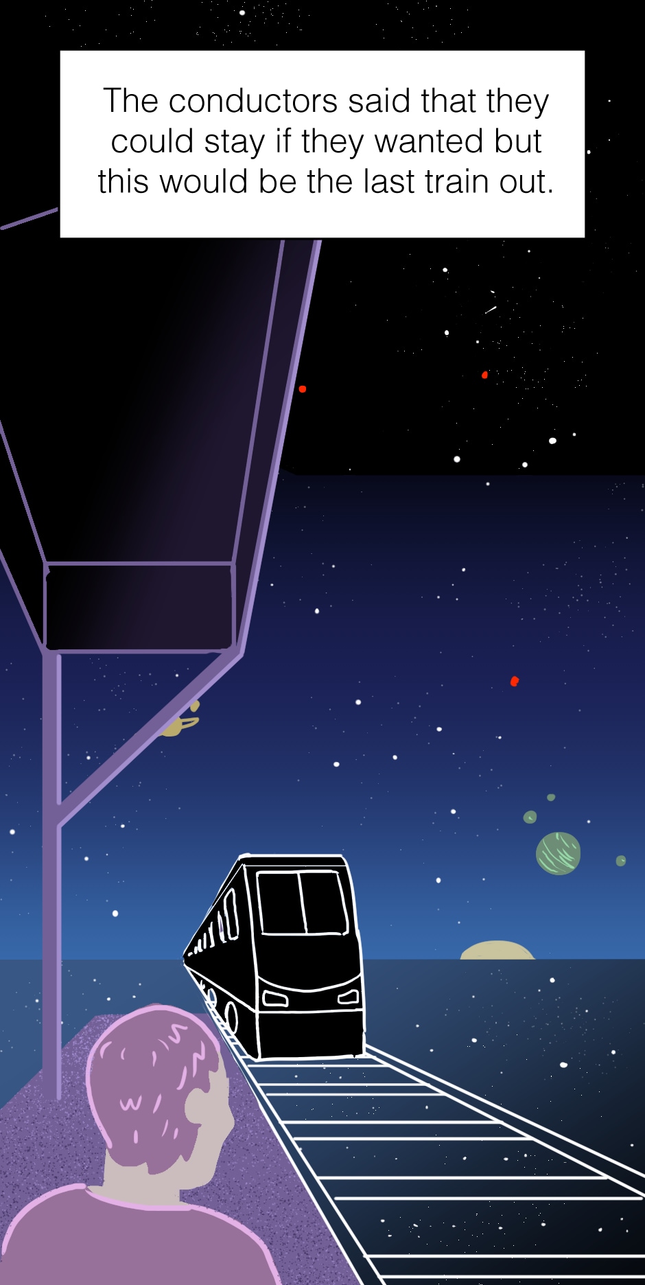 Short comic: Mysterious beings show up and alert Earth that the last train is leaving.