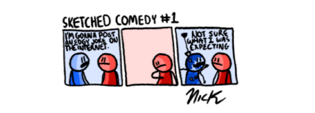 Sketched Comedy is a comic about humor and colors. Whether it be random humor, ironic humor, dark humor, and more! Though, it won't be over the top dark or graphic. If that's your cup of non-alcoholic beverage, than this is the web-comic for youuuuuuuuuu.