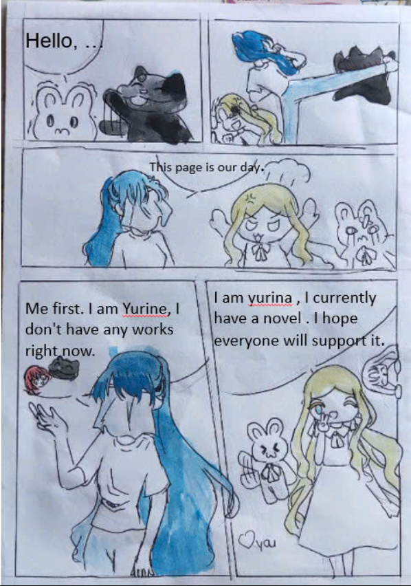 hi guys, i'm yurina. after finishing chapter 5, me and my friend yurine will do a Q&A and challenge chapter. so if you have any questions for us, please message me on the homepage or on yurine's page https://tapas.io/vankhanhvt648
