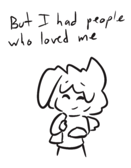 Awww sweet bean. I'm glad they had that unconditional love. And I hope they will experience that kind of love again. Most importantly I hope they one way or another learn to feel unconditional love for themself again. We all deserve that. ❤️