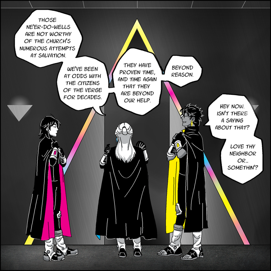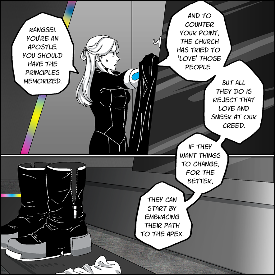 In the land of Trinita, there is only one true constant: The Exalted Church of the APX. Lead by three supreme beings known as the Apostles, their duty is to conquer and unify the masses in order to atone for the mistakes of their ancestors. Trapped by a mysterious, black fog that encircles the last habitable zone on the planet, Trinita is cramped, overpopulated. Tensions continue to rise as the Church clashes with insurgents and those who deny the reach of their Exalted Creator. Can the people be united? Or is mankind doomed to be withered and eclipsed by greed and ignorance? Will they ever find their APX?